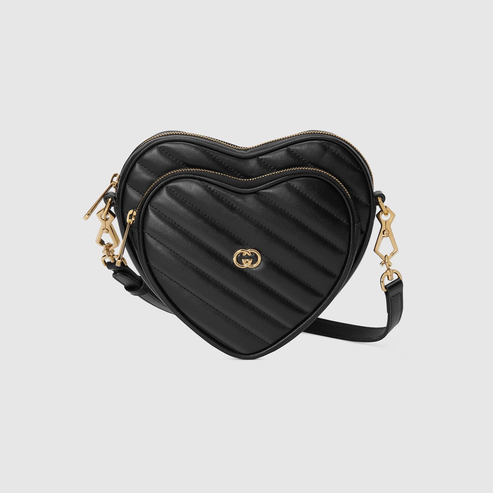Replica Designer Bag GUCCI Interlocking G mini heart shoulder bag black leather