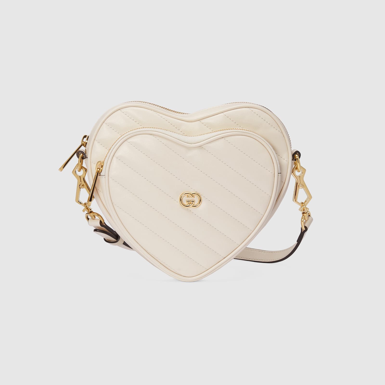 Replica Designer Bag GUCCI Interlocking G mini heart shoulder bag white leather