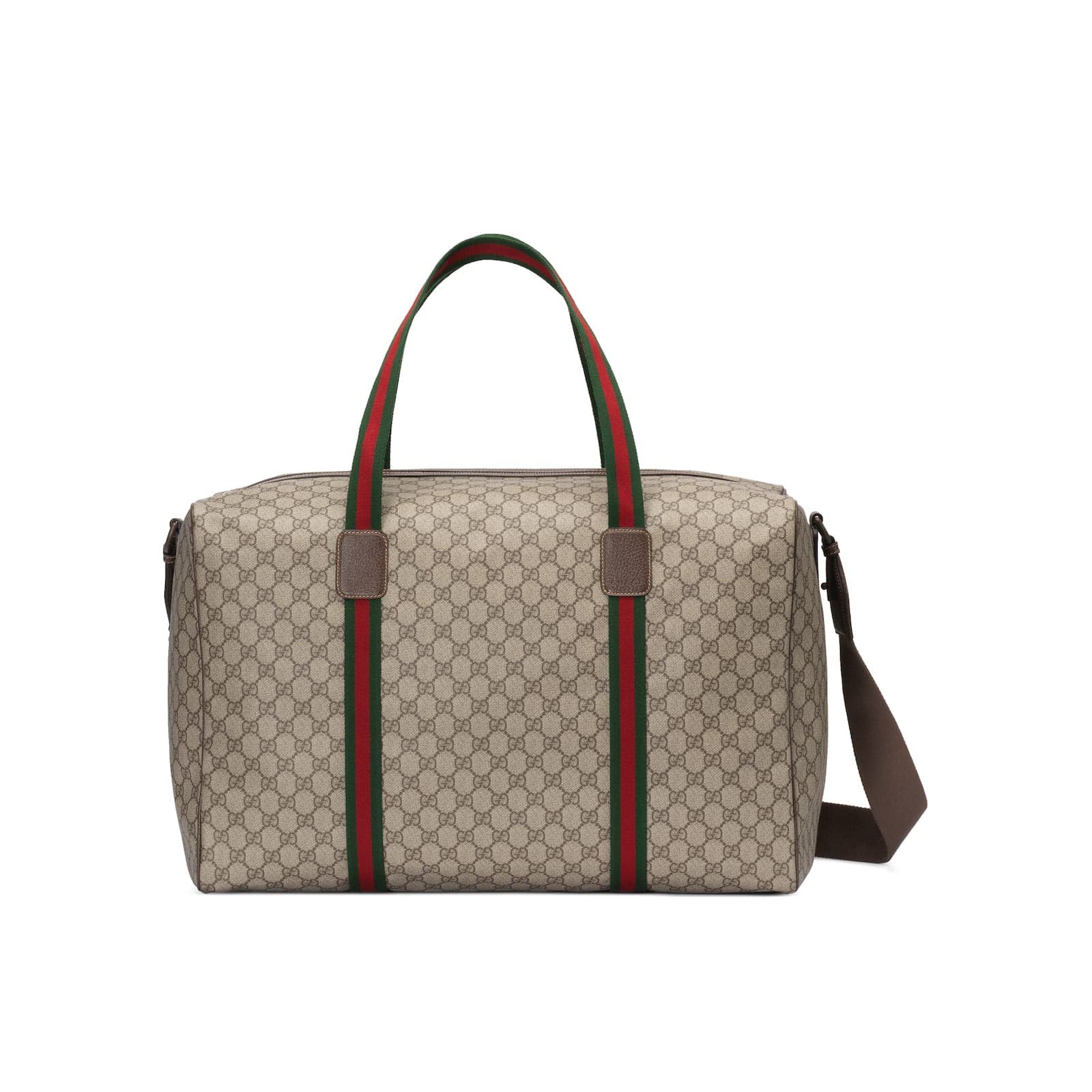 Replica Designer Bag GUCCI Large duffle bag with Web beige and ebony Soft GG Supreme
