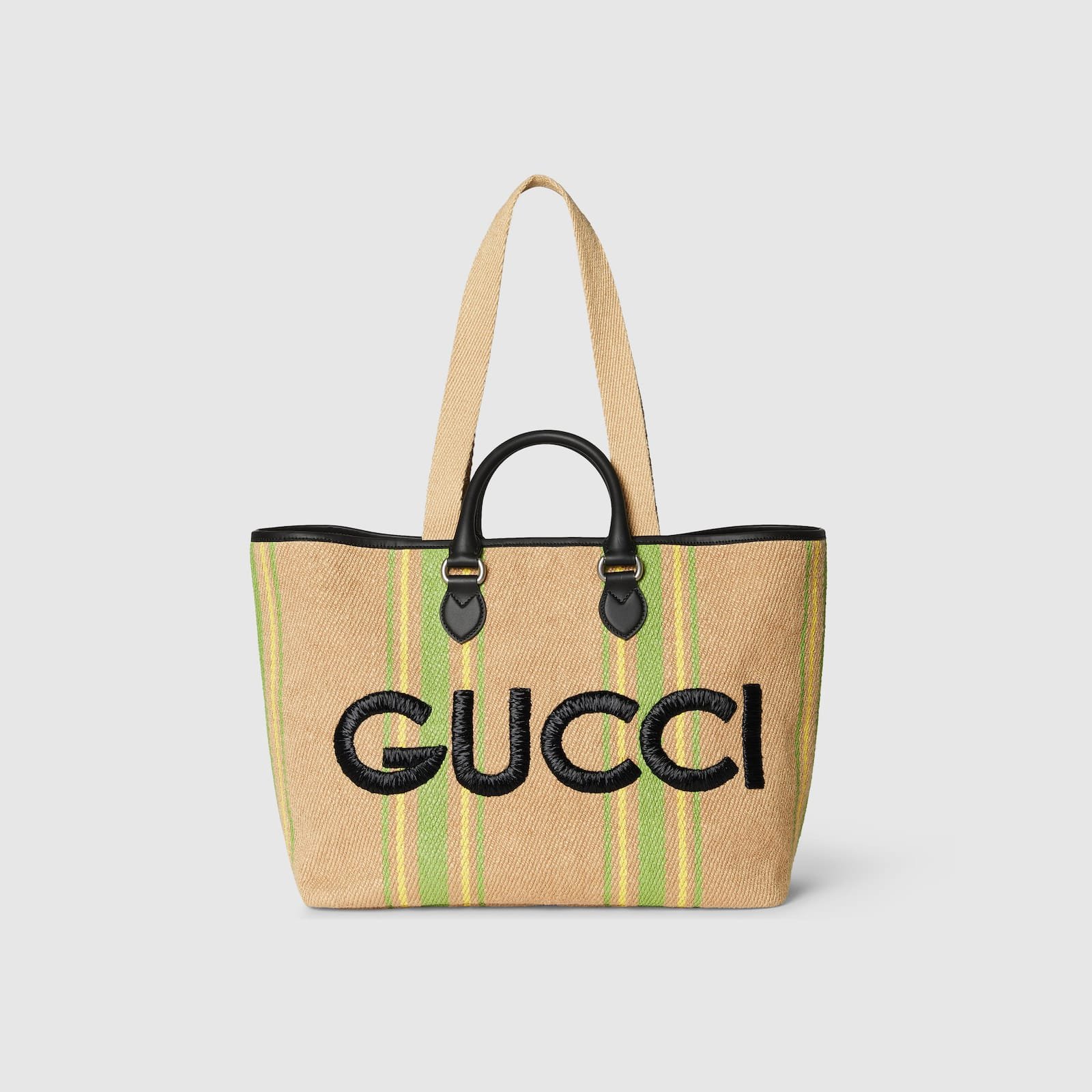 Replica Designer Bag GUCCI Large tote bag with embroidery natural and green jute