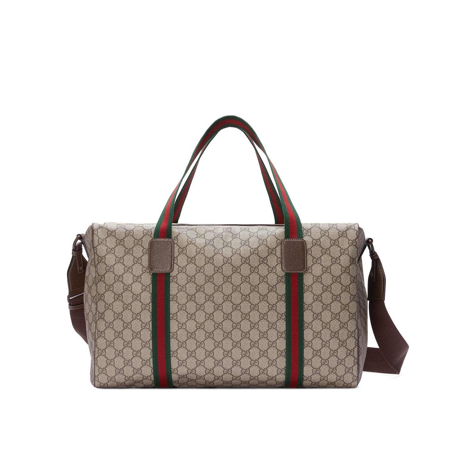 Replica Designer Bag GUCCI Medium duffle bag with Web beige and ebony Soft GG Supreme