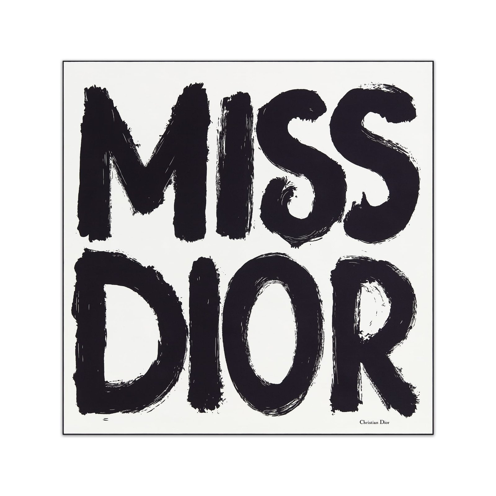 Dior Miss Dior Graffiti 90 Square Scarf White and Black Silk Twill