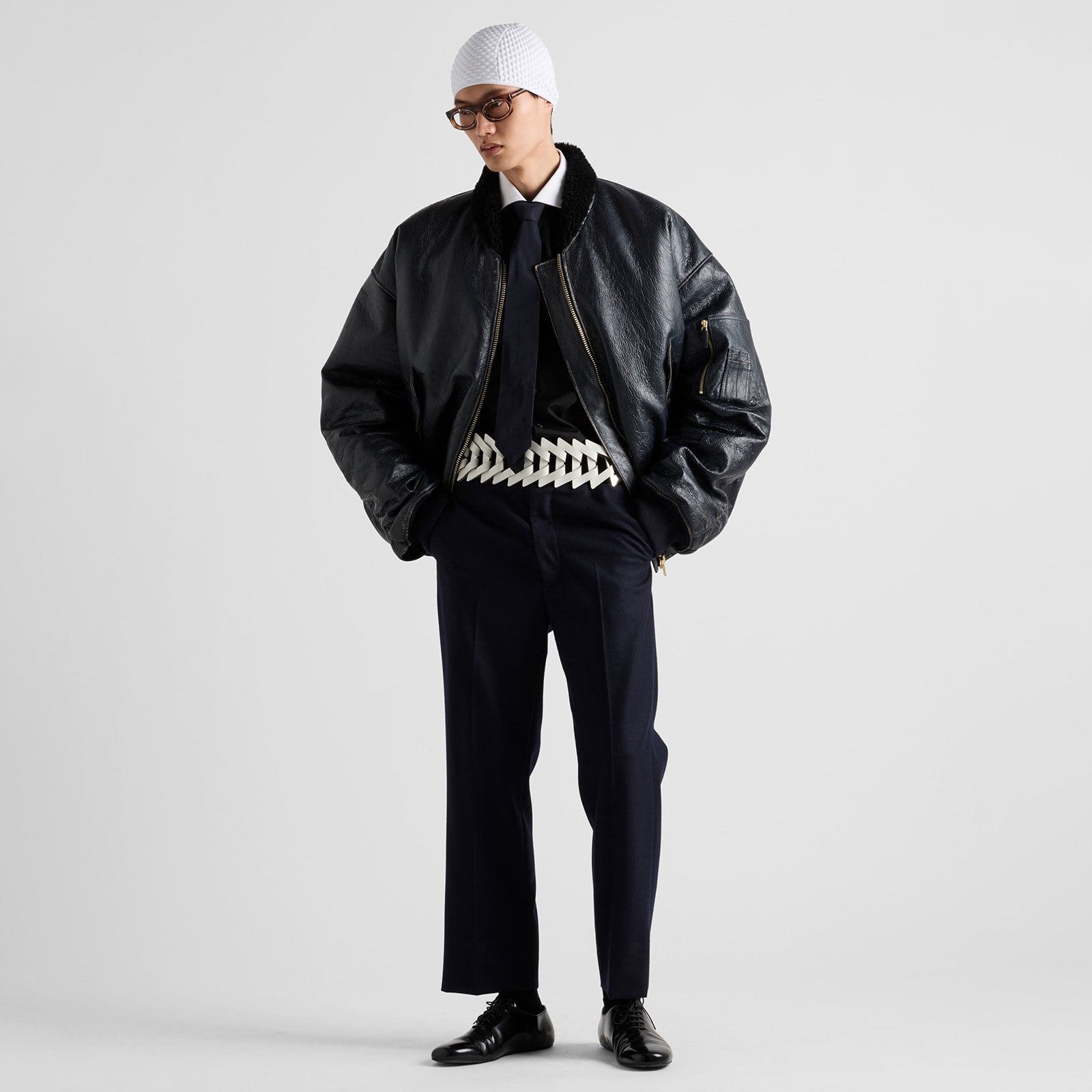 Prada Nappa Leather And Shearling Oversized Bomber Jacket