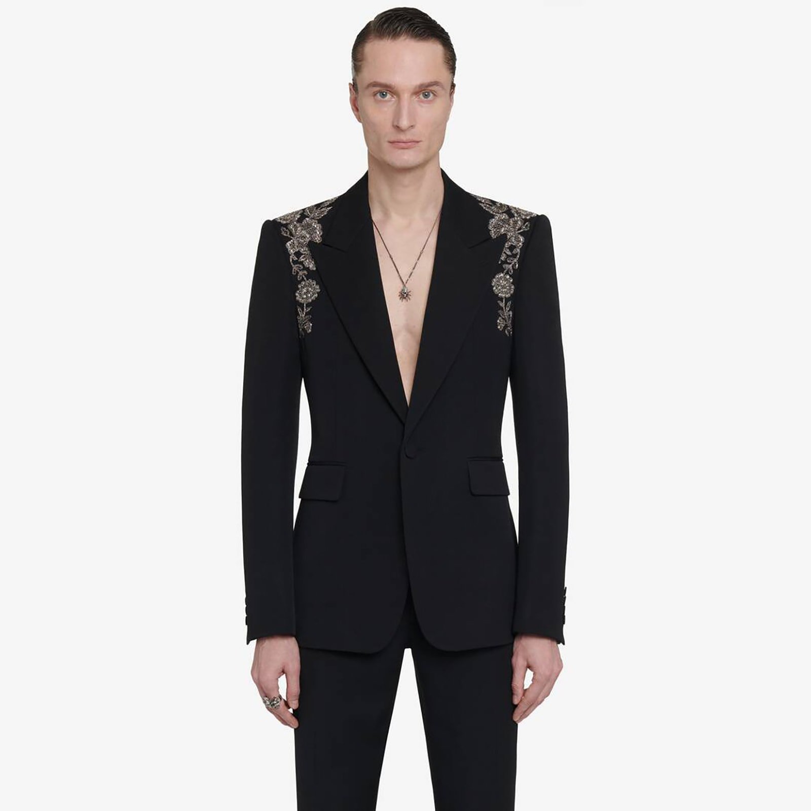 Alexander McQueen Men’s Embroidered Harness Single-breasted Jacket in Black