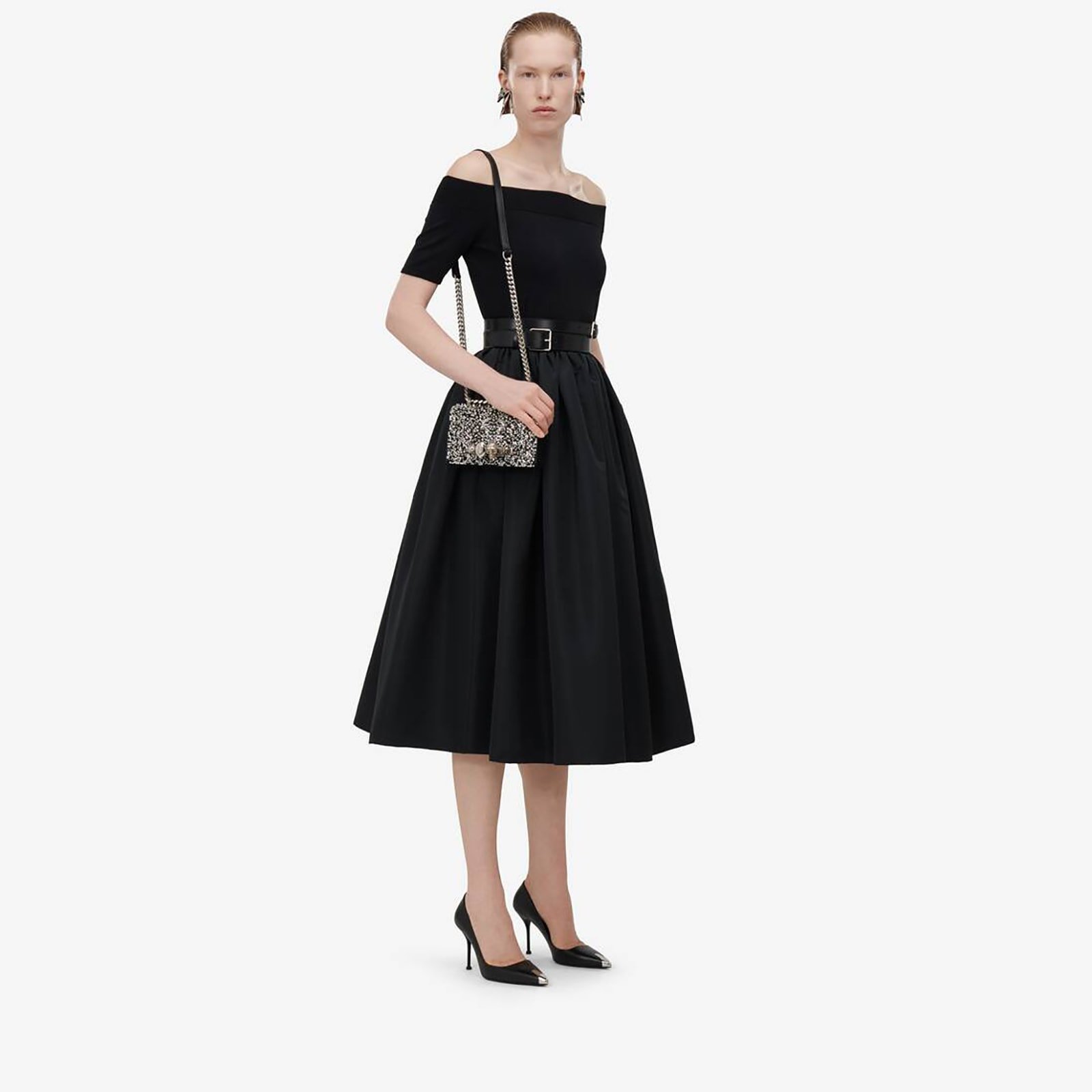 Replica Designer Bag Alexander McQueen Crystal-embellished Mini Jewelled Satchel in Black