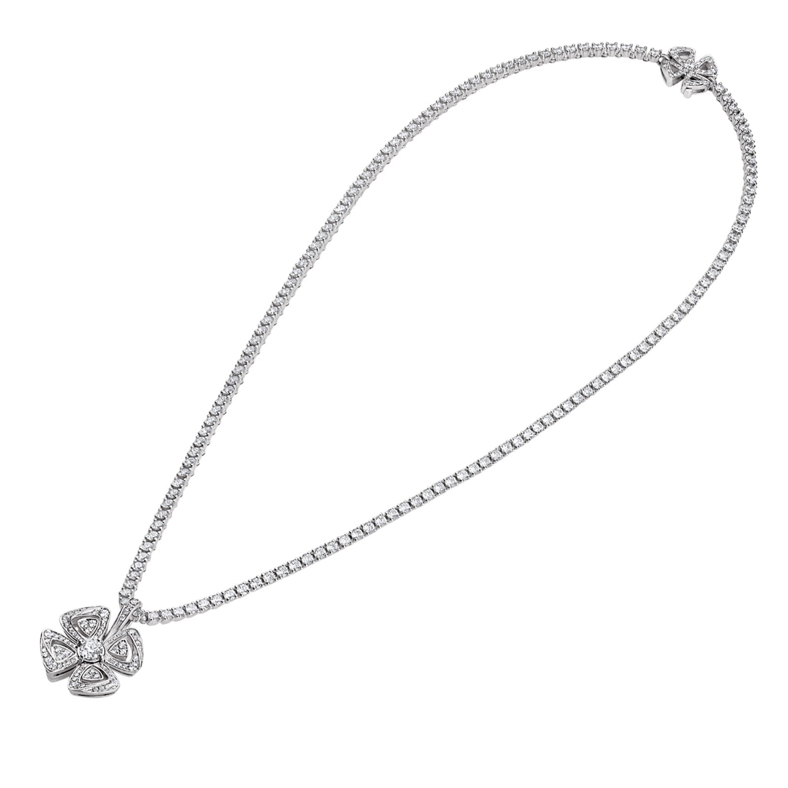 Fiorever 18 kt white gold necklace set with round brilliant-cut diamonds and pave diamonds.