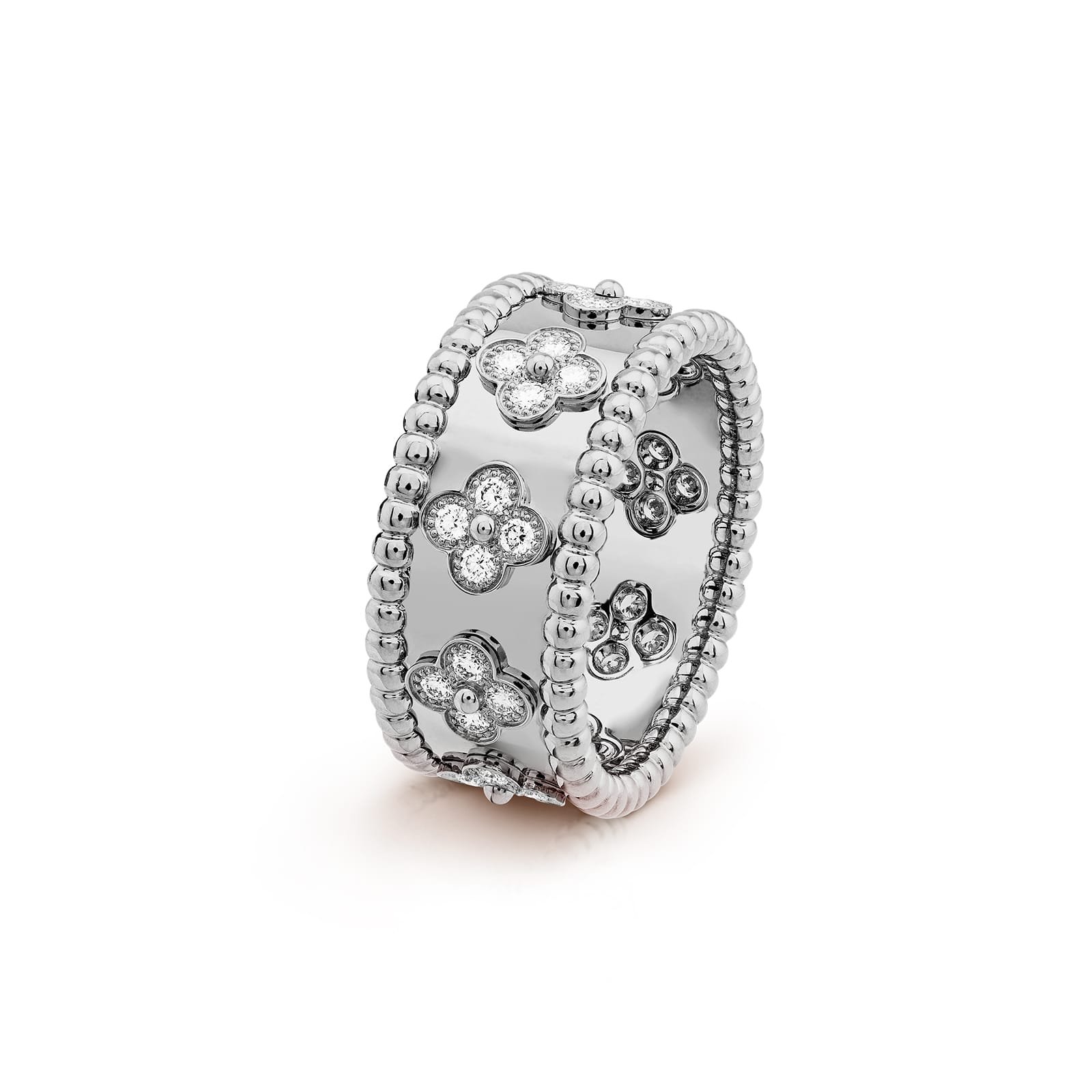 Van Cleef & Arpels Perlee Clovers Ring Medium Model 18K White Gold Diamond