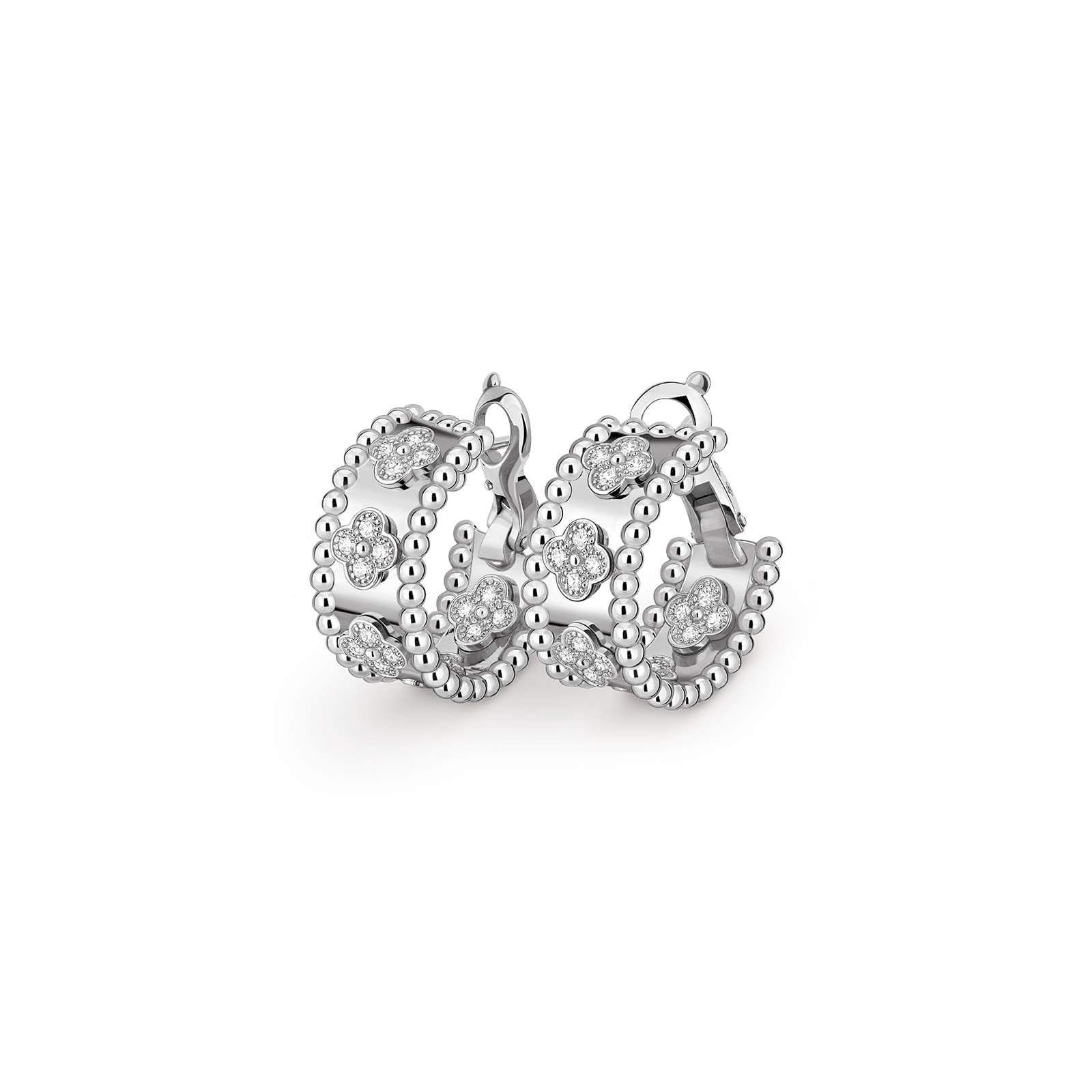 Van Cleef & Arpels Perlee Clovers Hoop Earrings 18K White Gold Diamond
