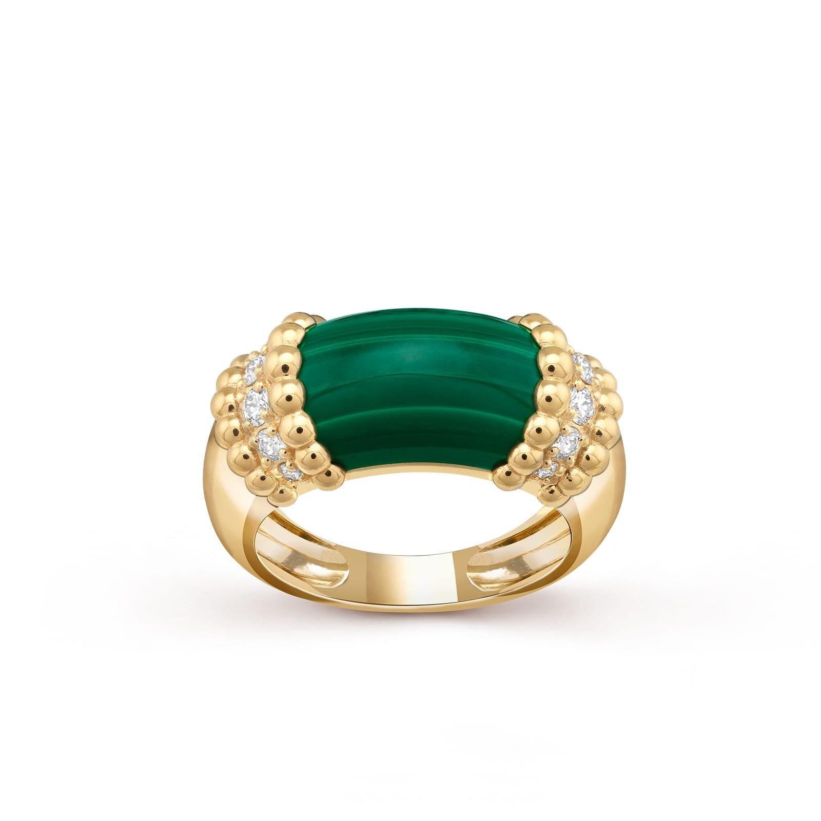 Van Cleef & Arpels Perlee Couleurs Ring 18K Yellow Gold Diamond Malachite