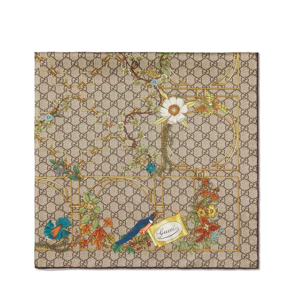GUCCI Animal and floral print silk carre