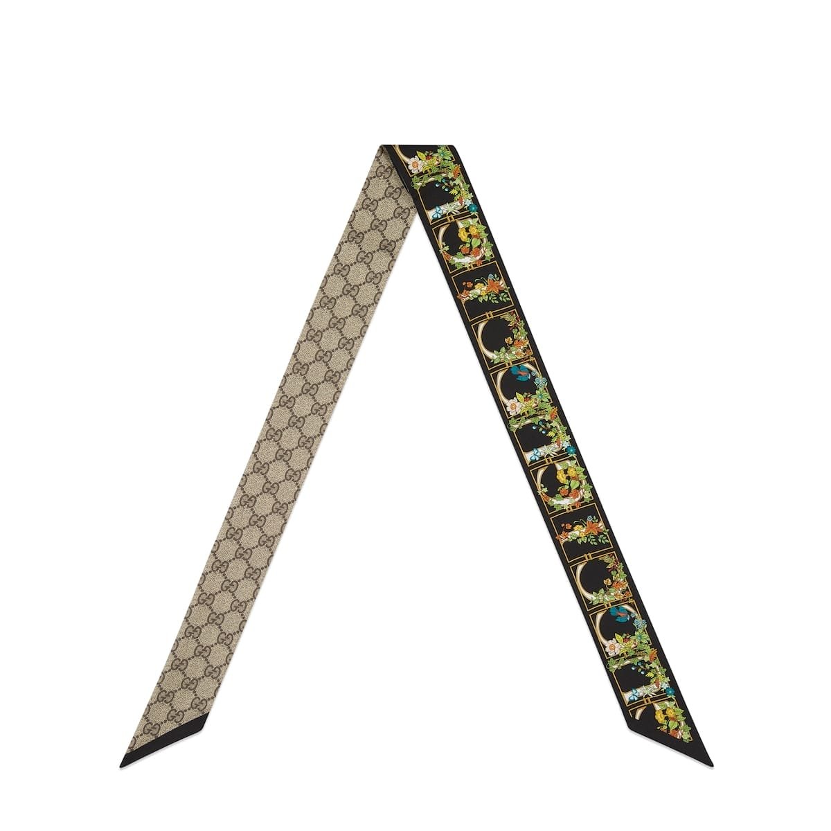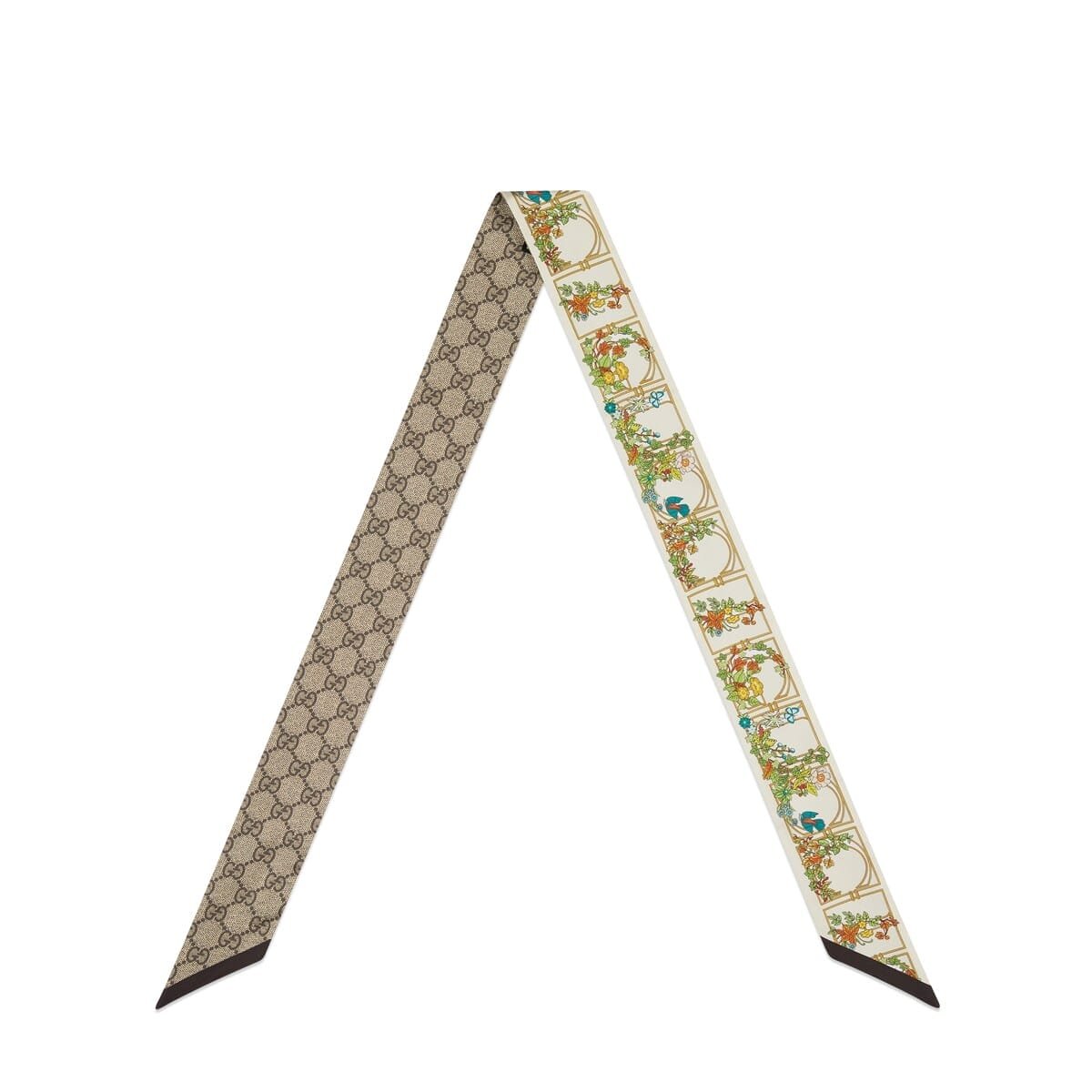 GUCCI Animal and floral print silk neck bow