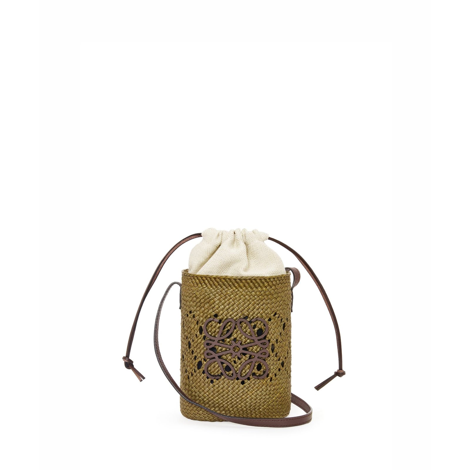 LOEWE Replica Designer Bag Anagram Ajour square pocket in iraca palm and classic Calfskin