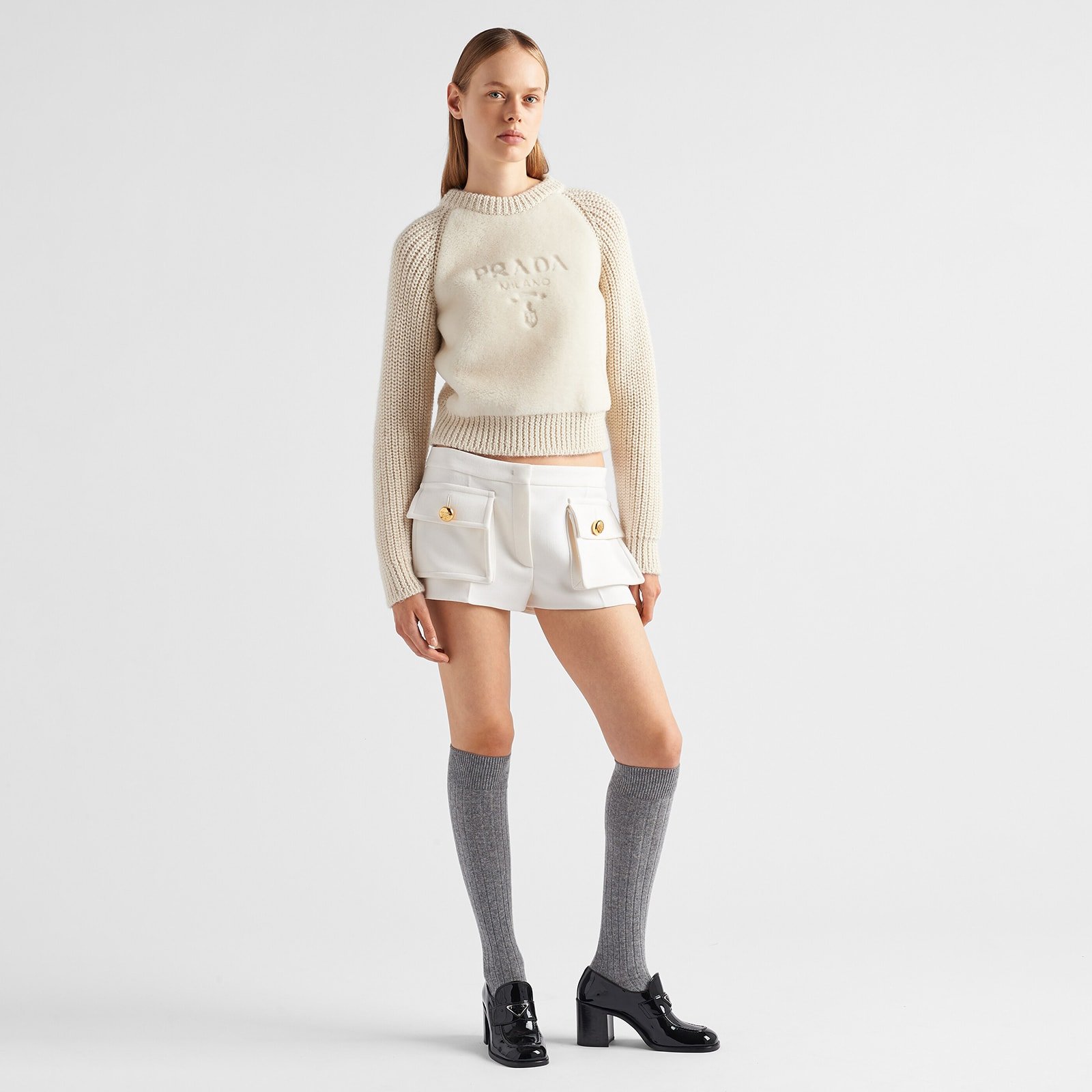 Footwear: Prada’s shoe collections are known for their unique designs and high-quality craftsmanship, including heels, boots, and sneakers.