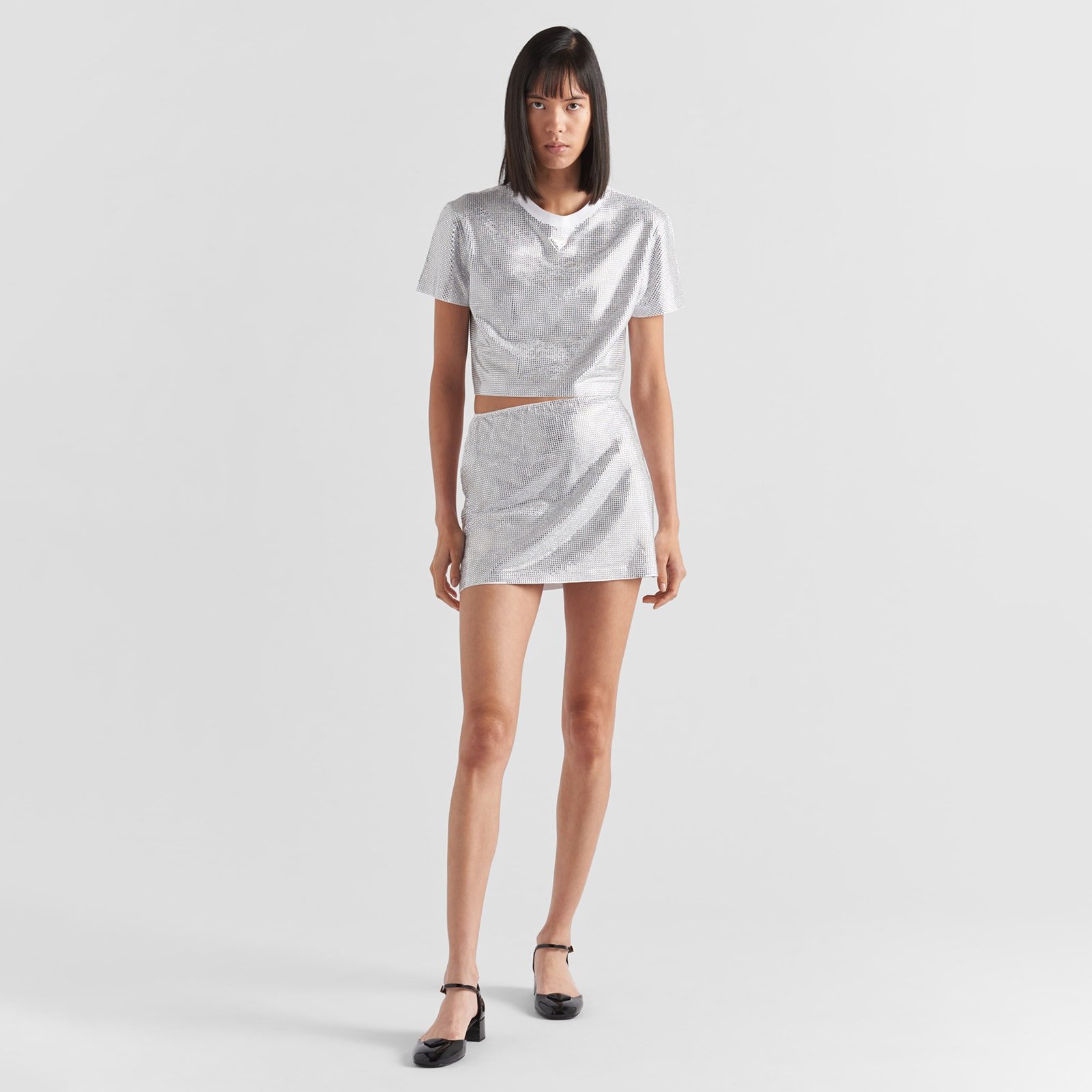 Prada Embroidered Rhinestone Mesh Midi-Skirt