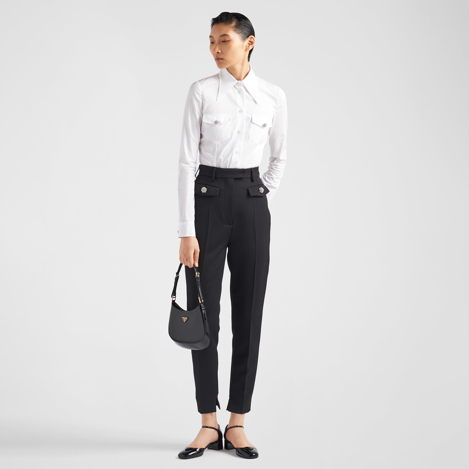 Prada Poplin Shirt With Crystal Brooch