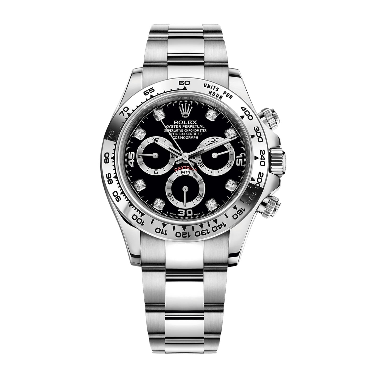 Rolex Cosmograph Daytona 40mm White Gold Black Diamond Dial Oyster Bracelet m116509-0055