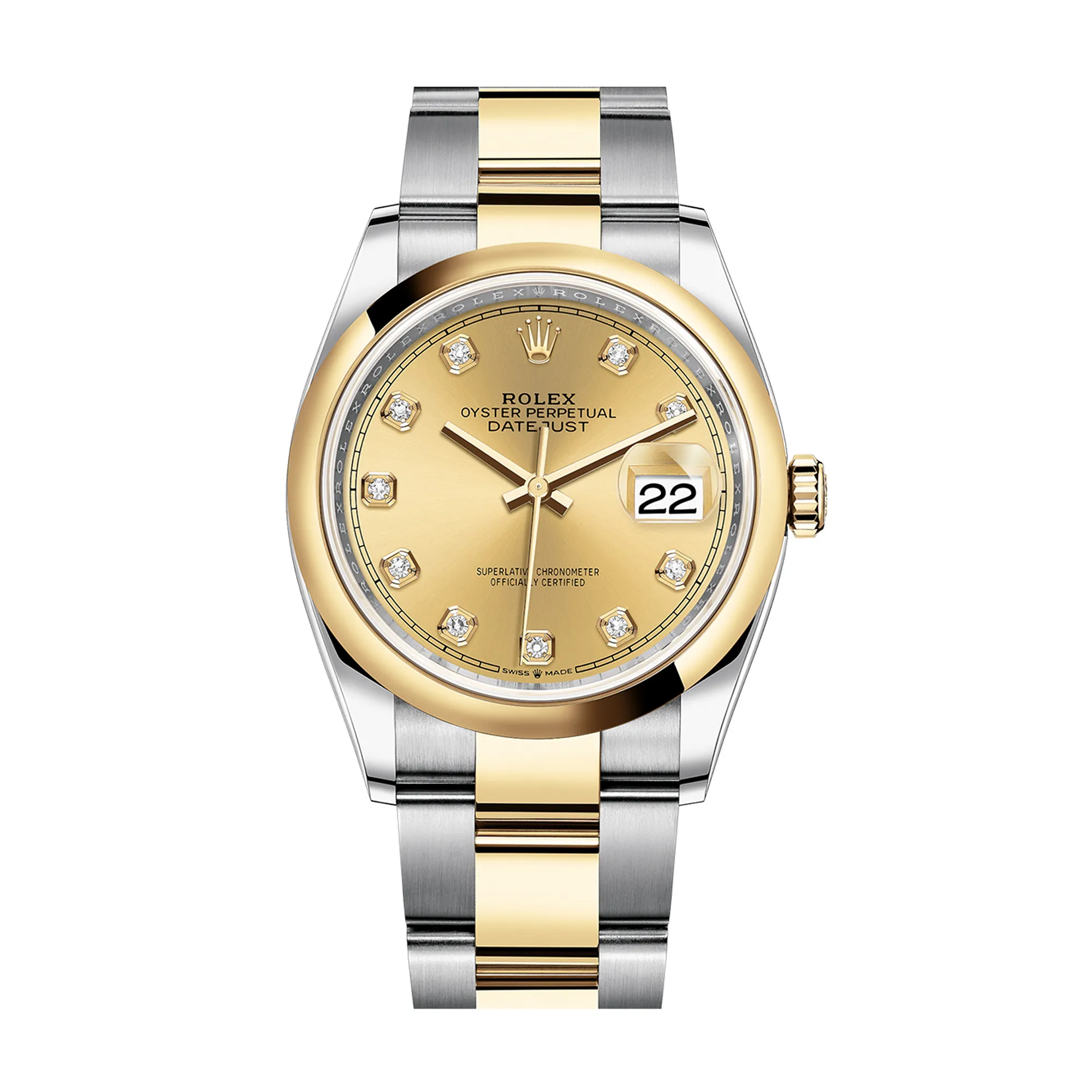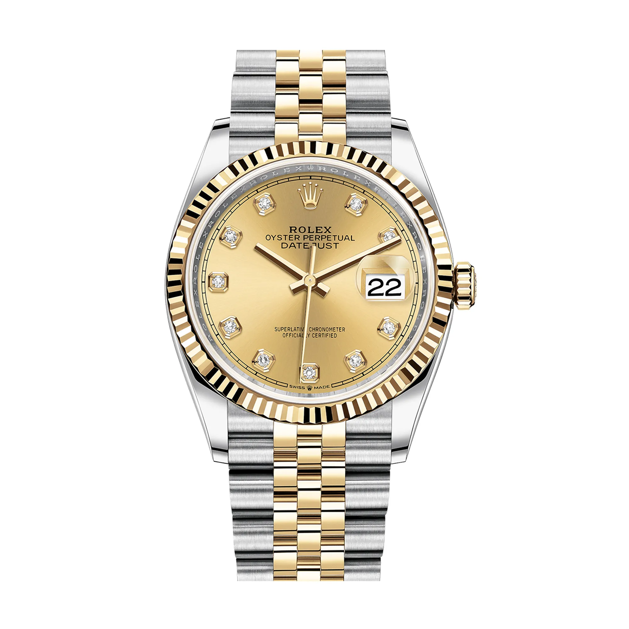 Rolex Datejust 36 Yellow Gold/Steel Champagne Jubilee Diamond Dial & Fluted Bezel Oyster Bracelet 126233