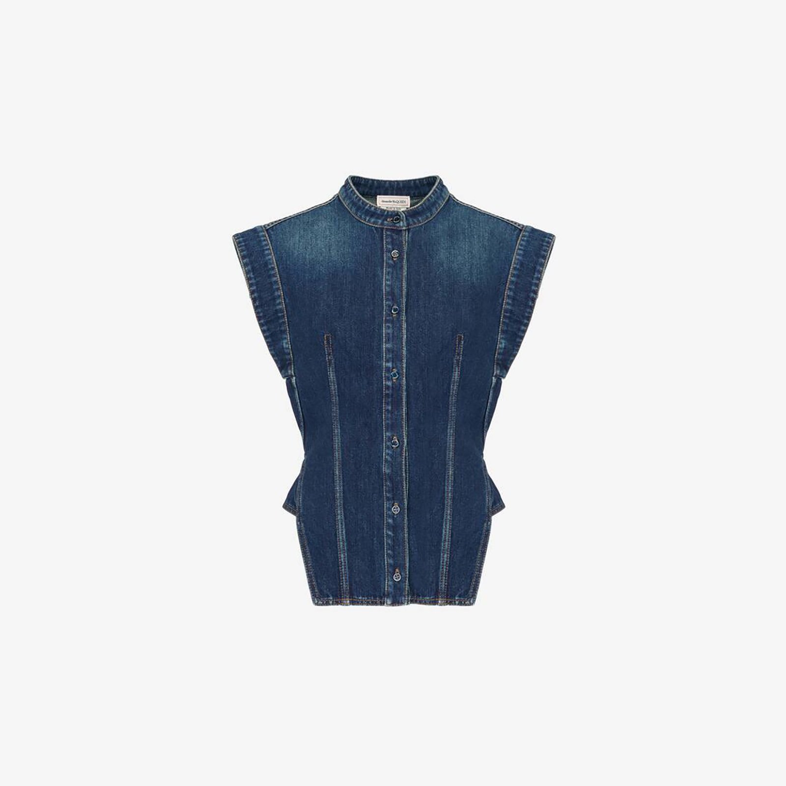 Alexander McQueen Women’s Cap Sleeve Denim Shirt in Indigo
