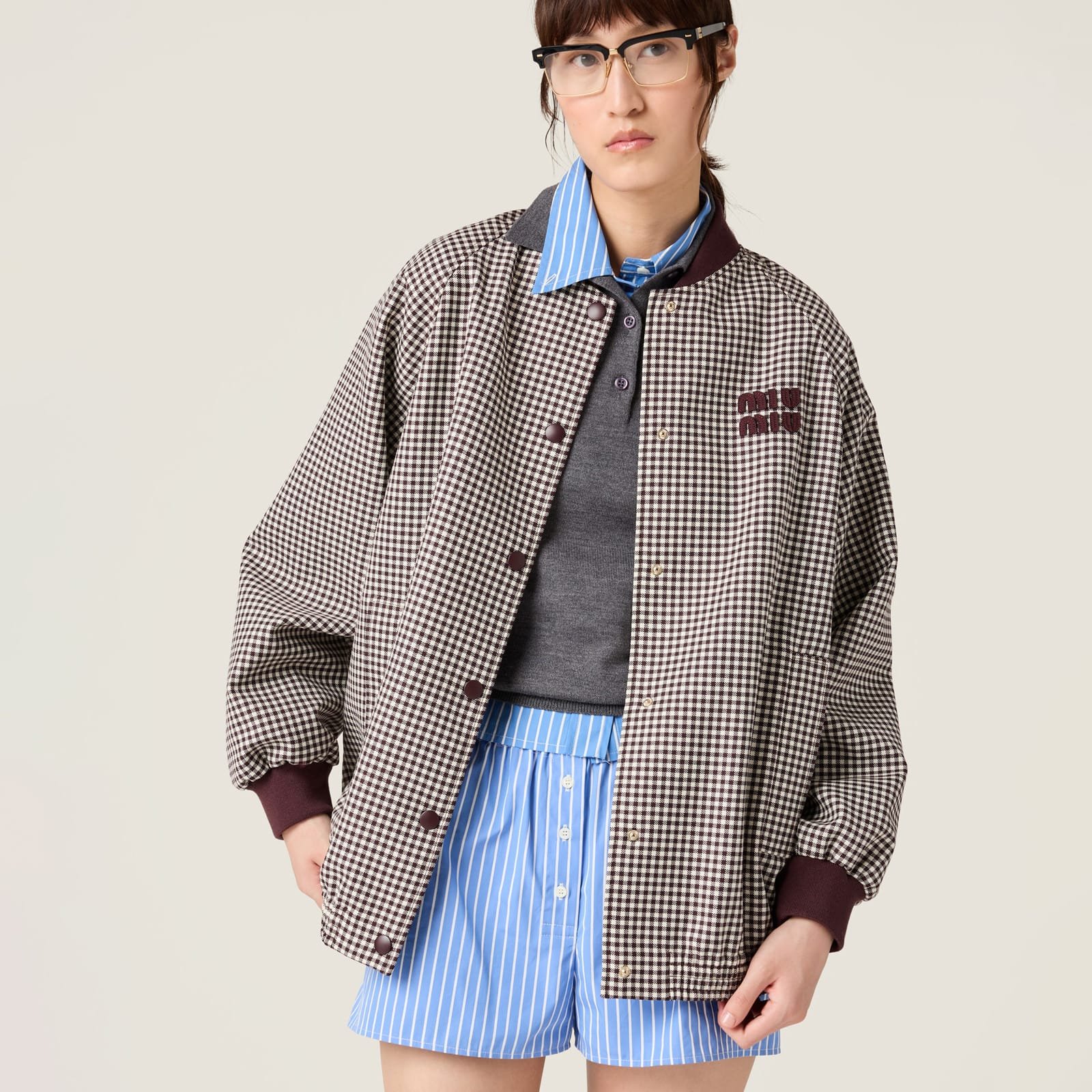 Miu Miu Gingham Check Blouson Jacket