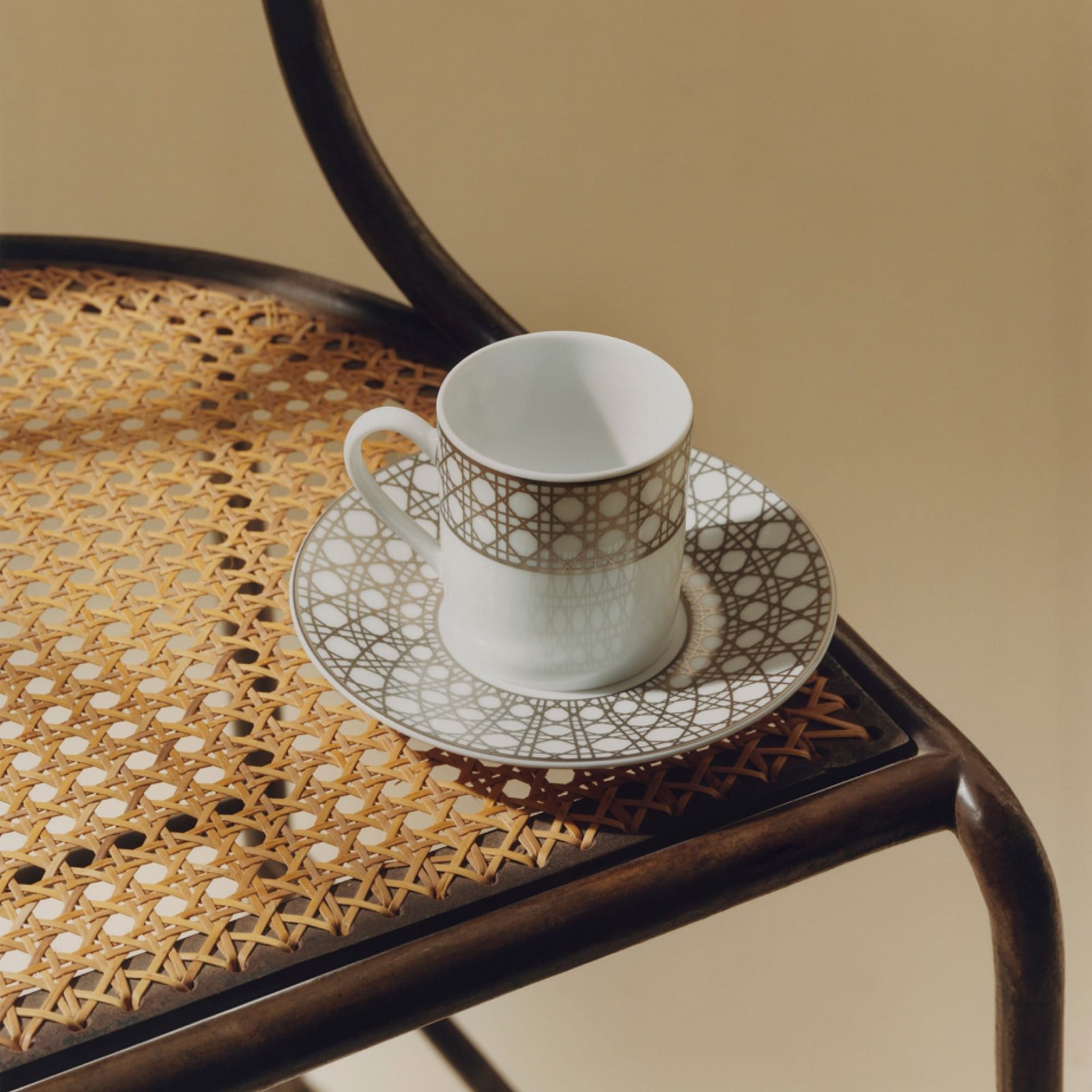 DIOR Coffee Cup Saucer White and Beige Cannage Montaigne
