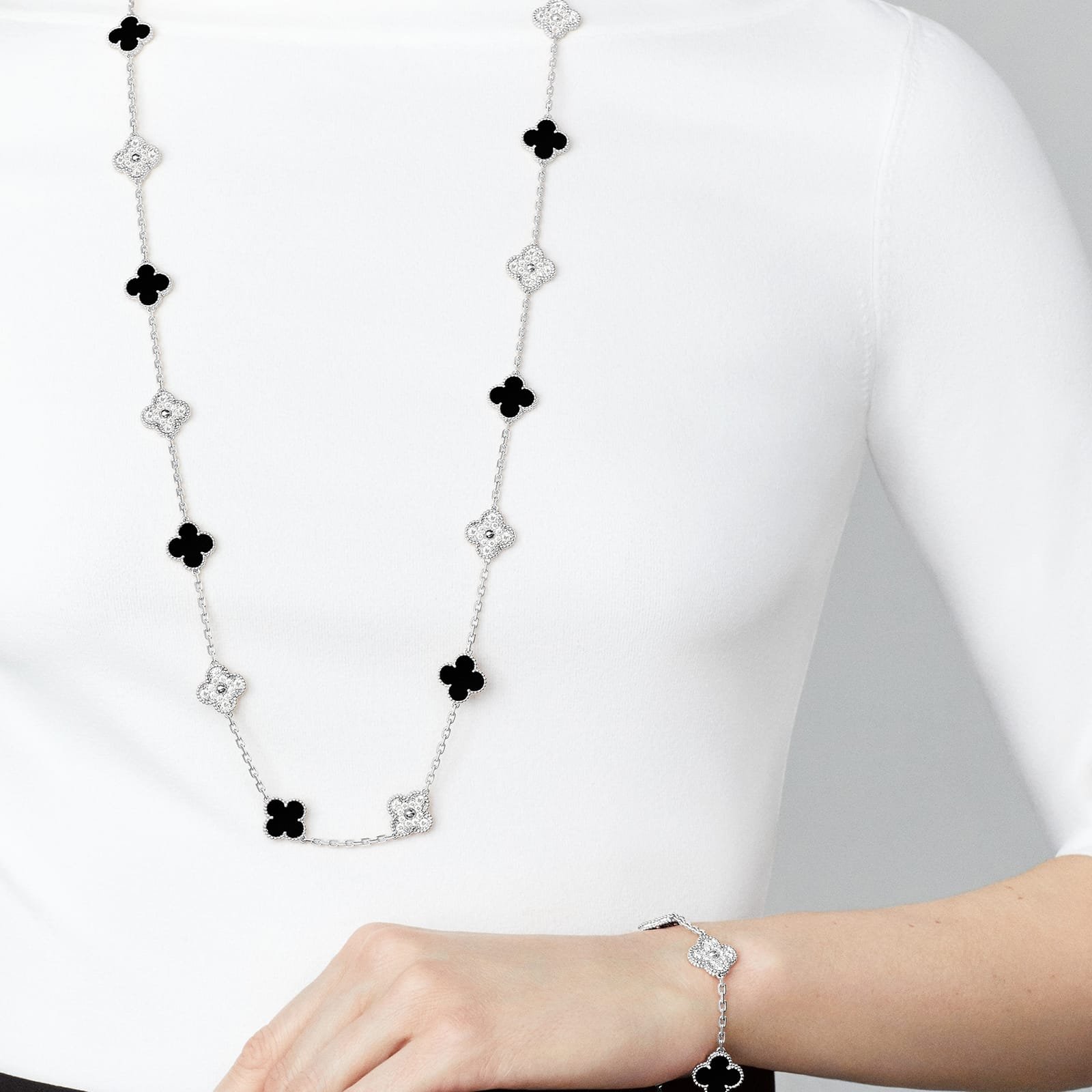 Van Cleef & Arpels Vintage Alhambra Bracelet 5 Motifs 18K White Gold Diamond Onyx