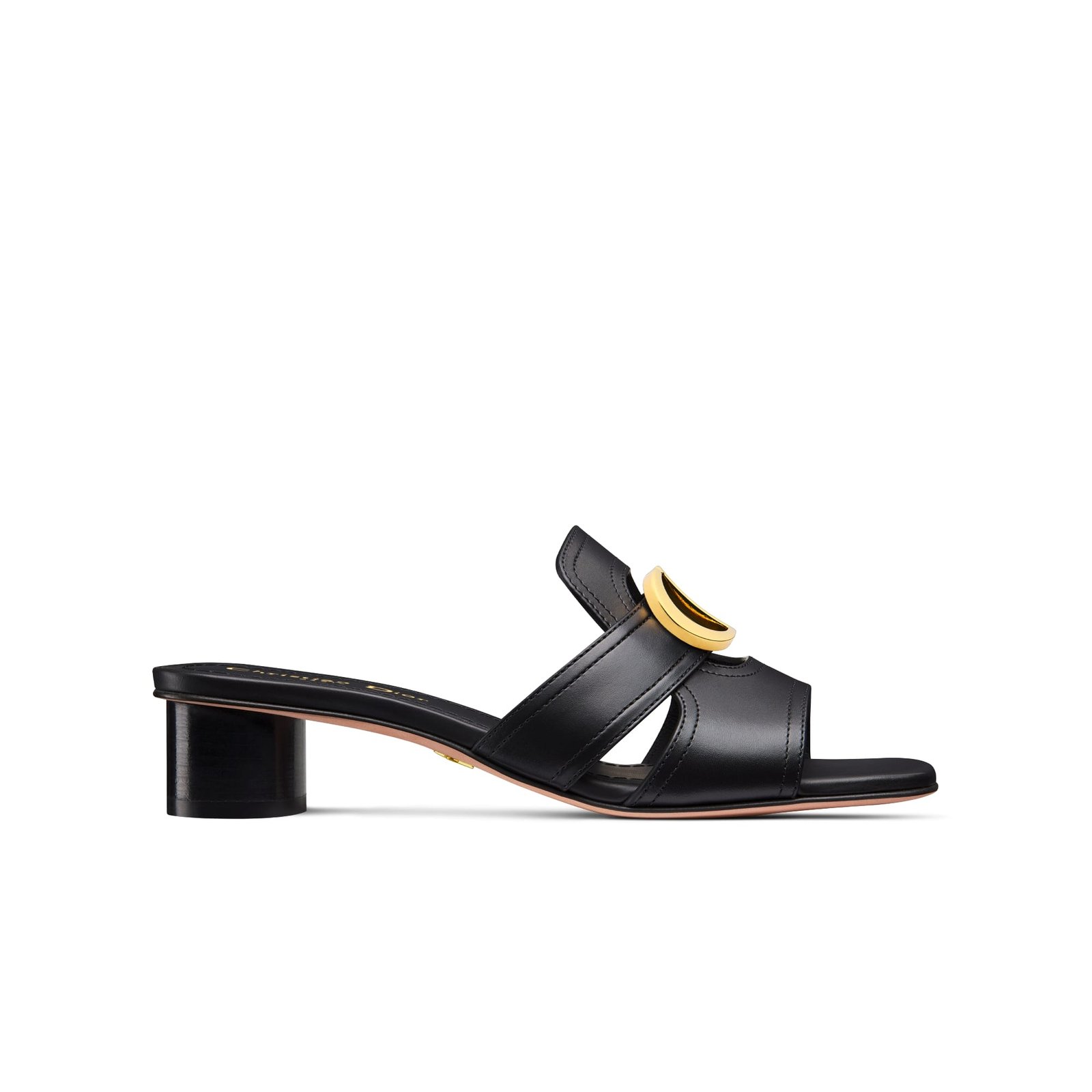Dior 30 Montaigne Heeled Slide Black Calfskin