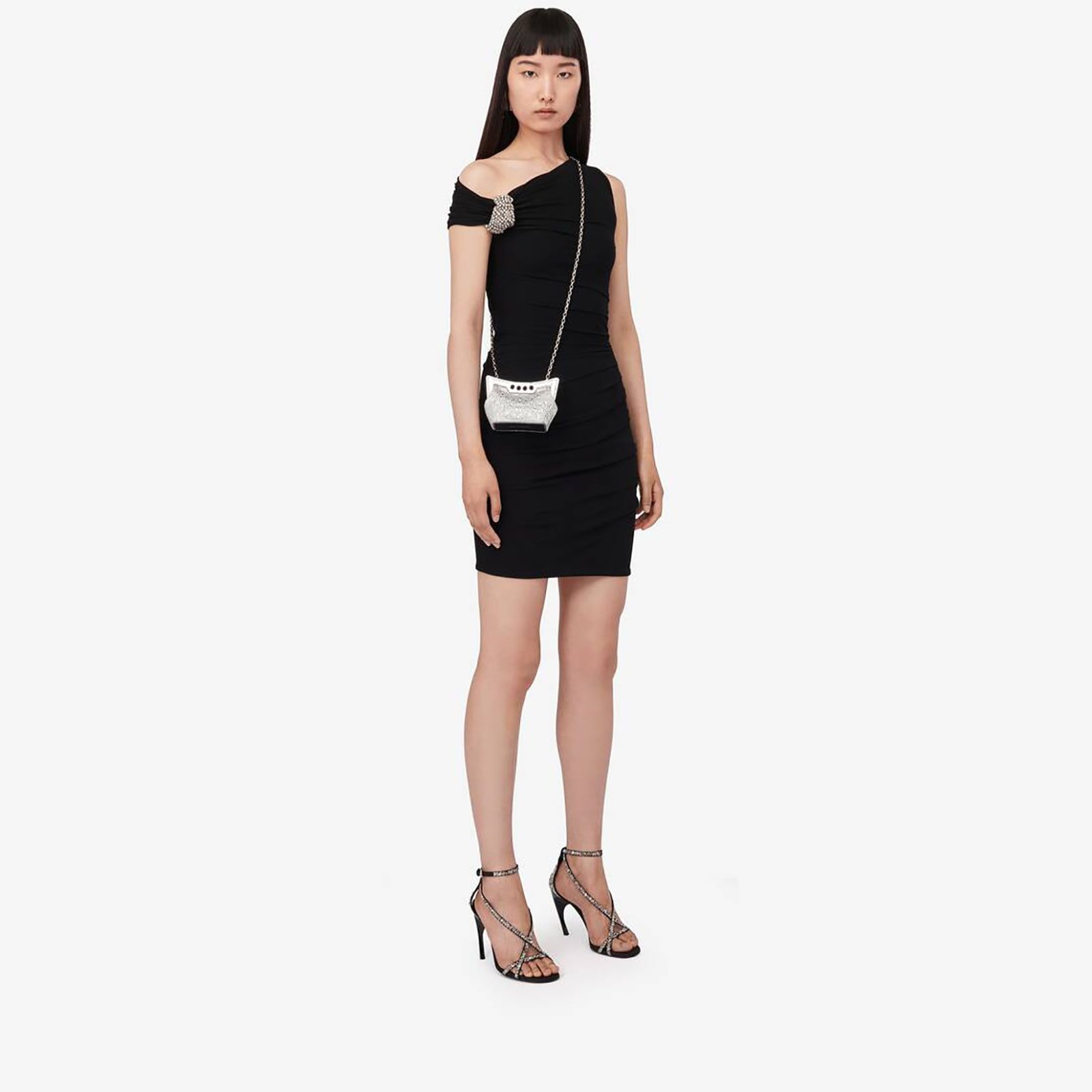 Replica Designer Bag Alexander McQueen The Jewelled Hobo Mini Bag in Silver