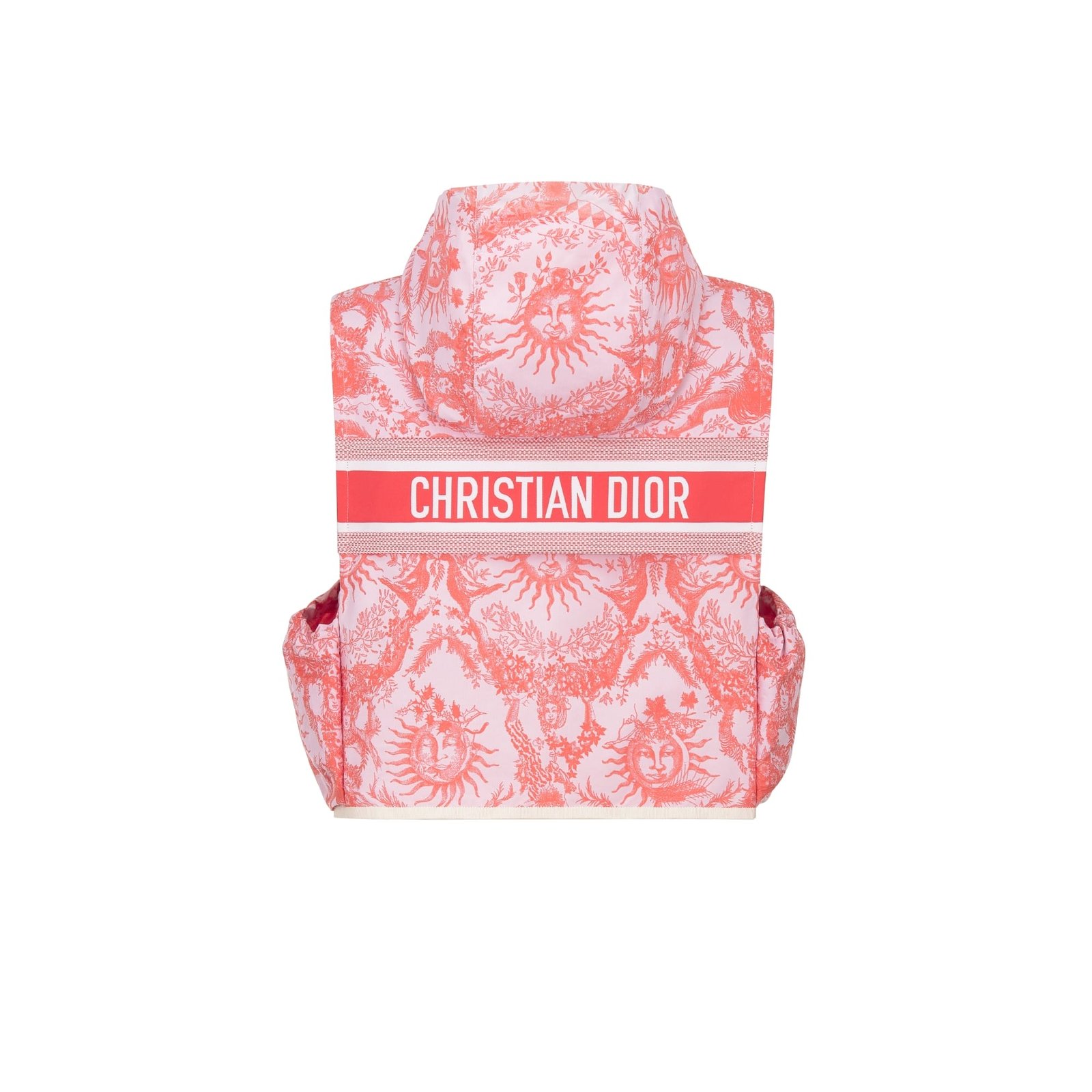 Dioriviera Hooded Sleeveless Vest White and Coral Technical Taffeta Jacquard with Toile de Jouy Soleil Motif