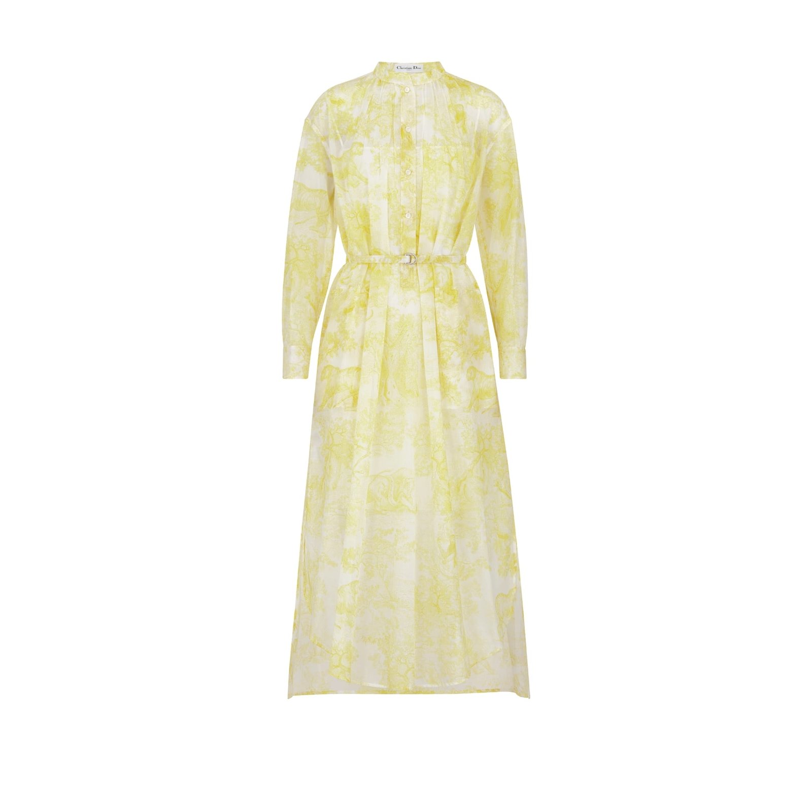 Dioriviera Mid Length Shirt Dress White and Lemon Yellow Cotton Muslin with Toile de Jouy Sauvage Motif