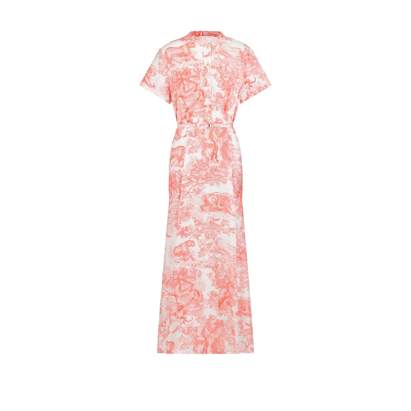 Dioriviera Long Shirtdress White and Coral Silk Twill with Toile de Jouy Sauvage Motif