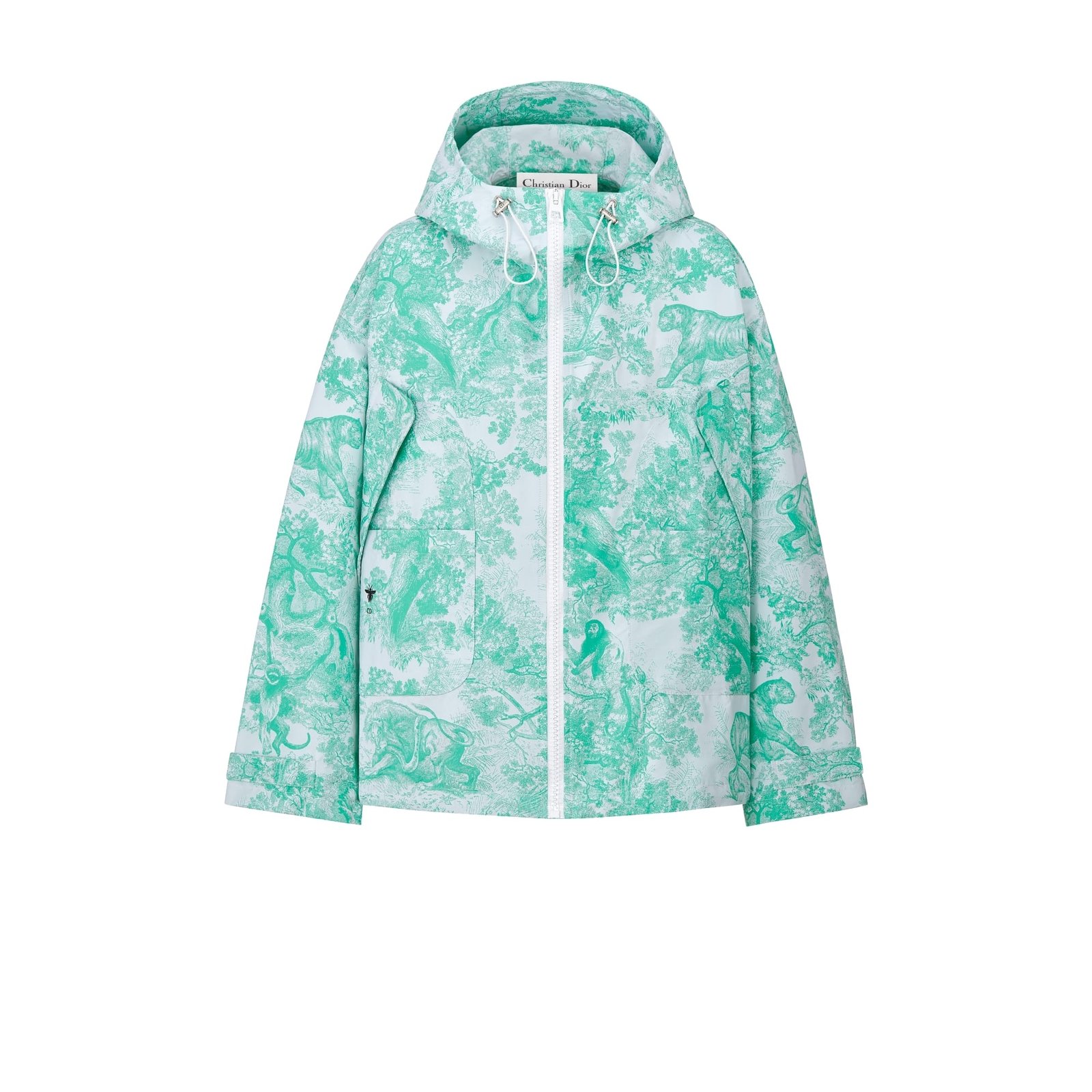 Dioriviera Hooded Anorak White and Aquamarina Technical Taffeta Jacquard with Toile de Jouy Sauvage Motif