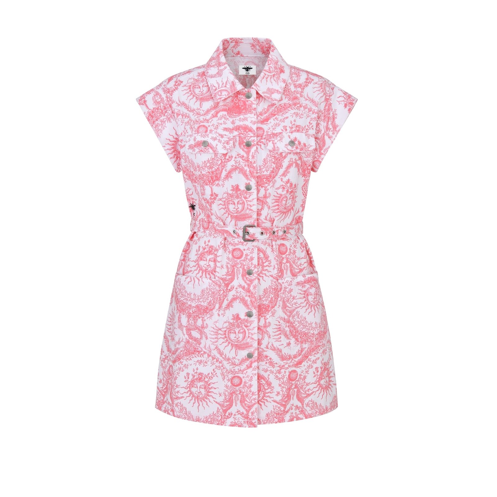 Dioriviera Short Shirt Dress White and Candy Pink Cotton Denim with Toile de Jouy Soleil Motif