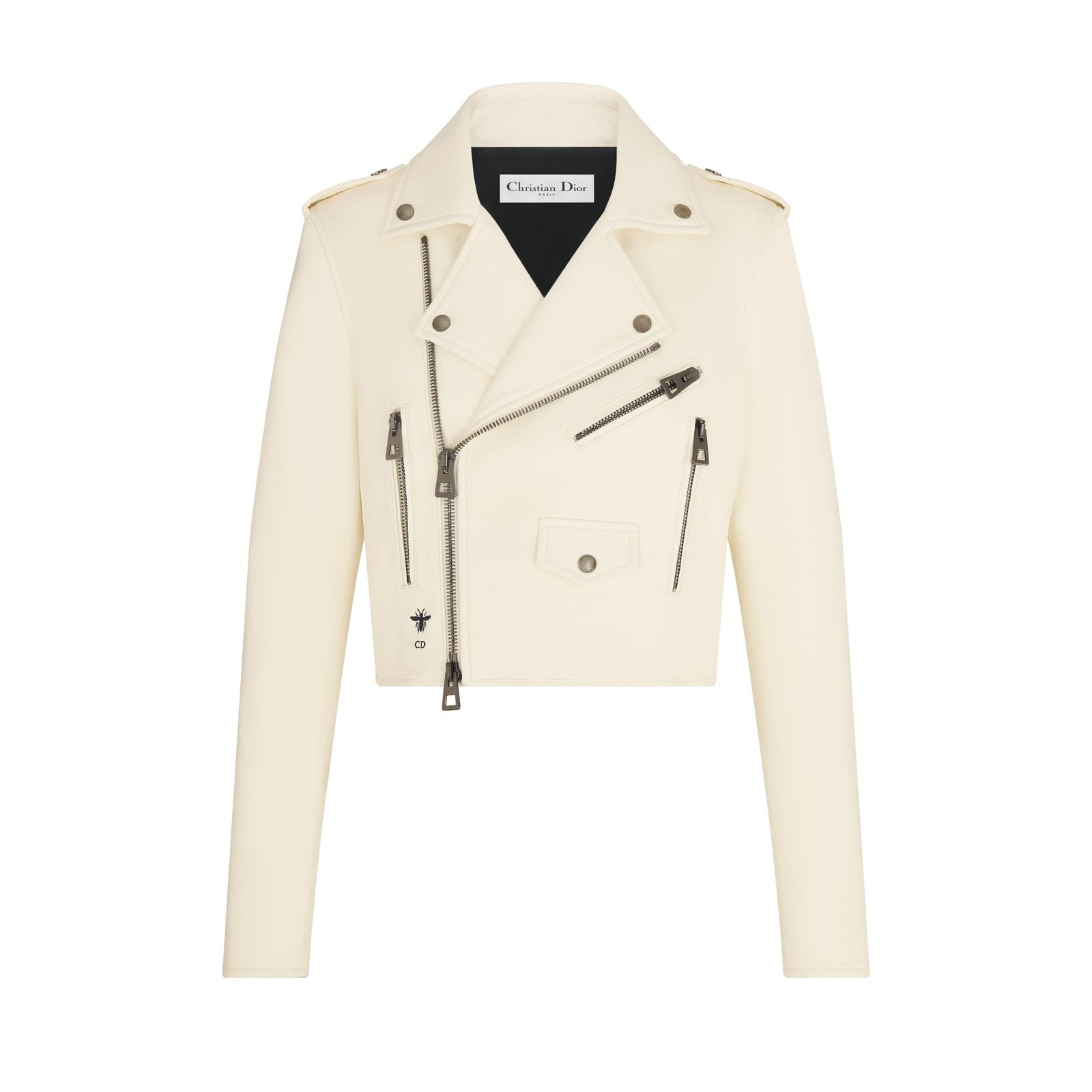 Dior Cropped Perfecto White Goatskin with Black Miss Dior Graffiti Signature