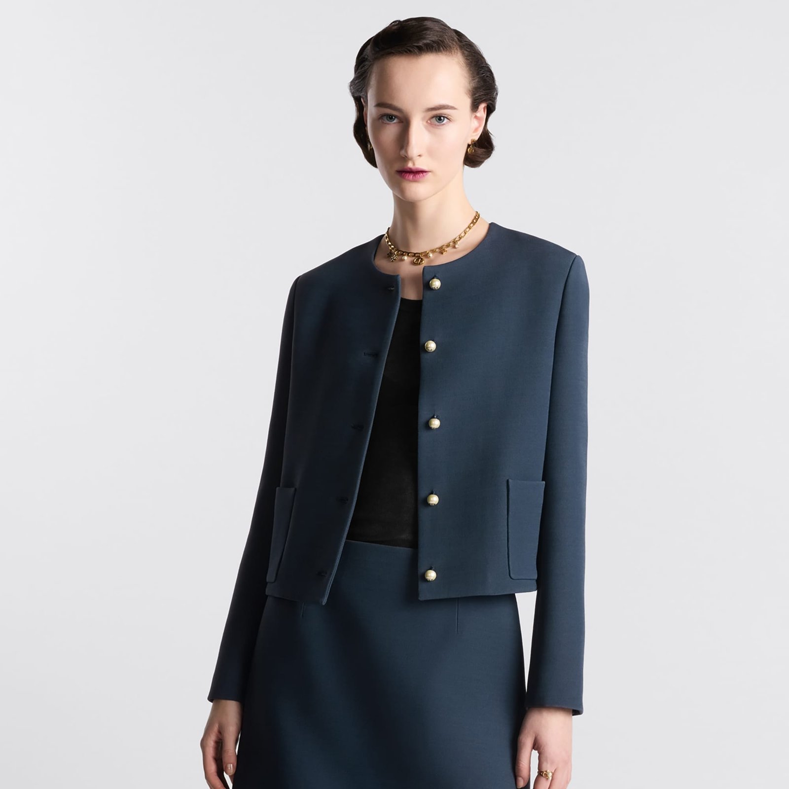 Dior Cropped Jacket Navy Blue Wool and Silk
