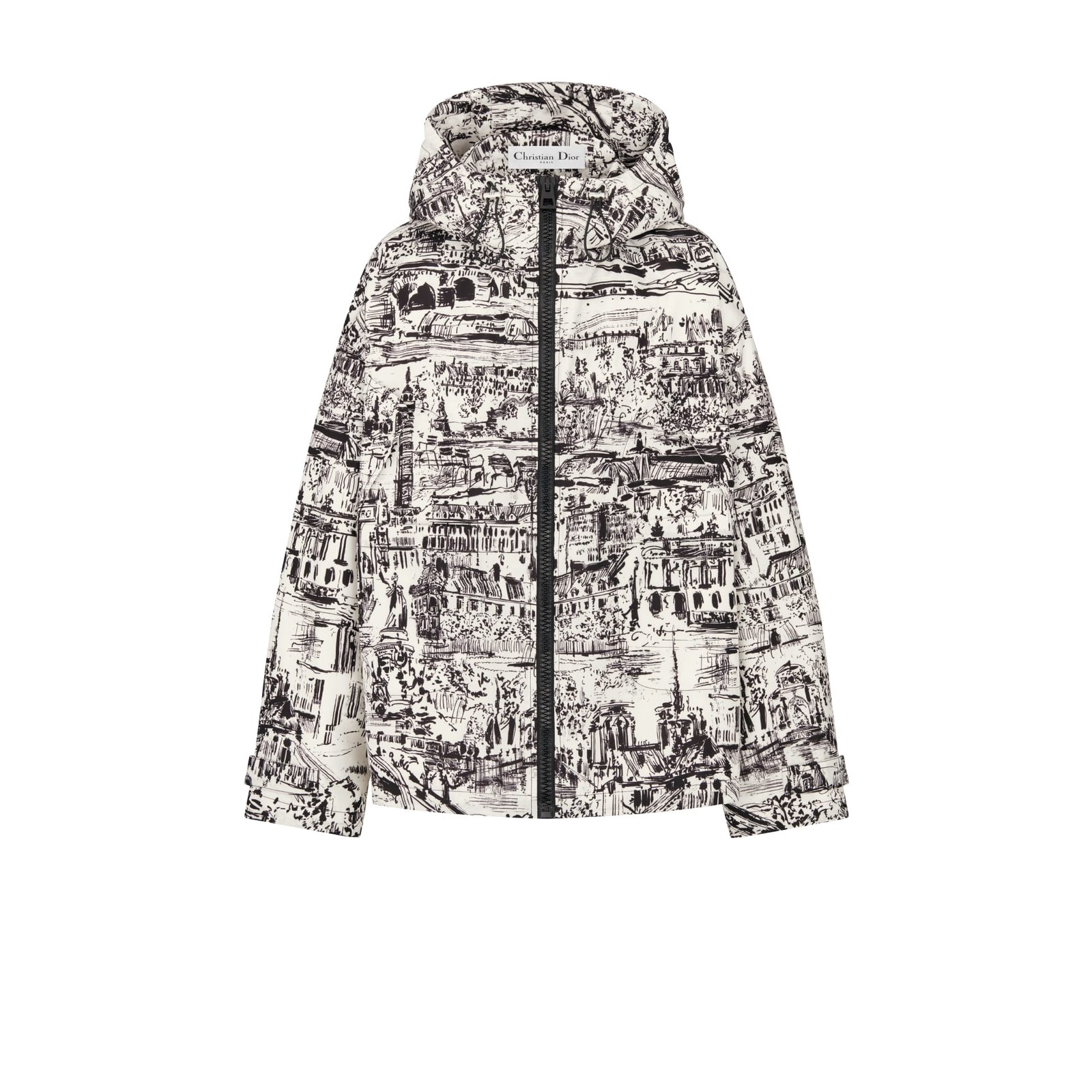 Dior Hooded Anorak White and Black Technical Taffeta Jacquard with Paris Allover Motif