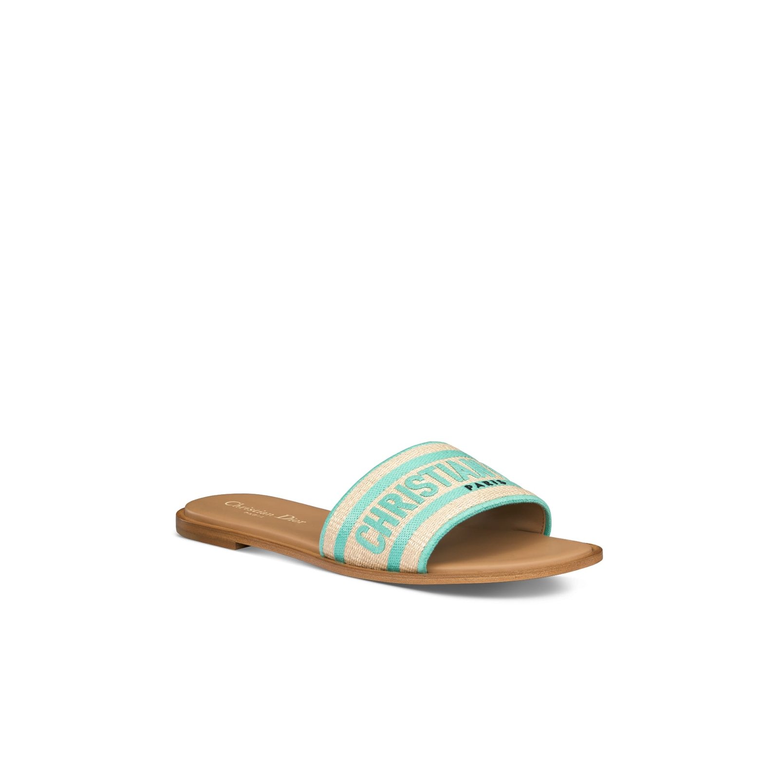 Dioriviera Dway Slide Natural Raffia and Aquamarina Embroidered Cotton
