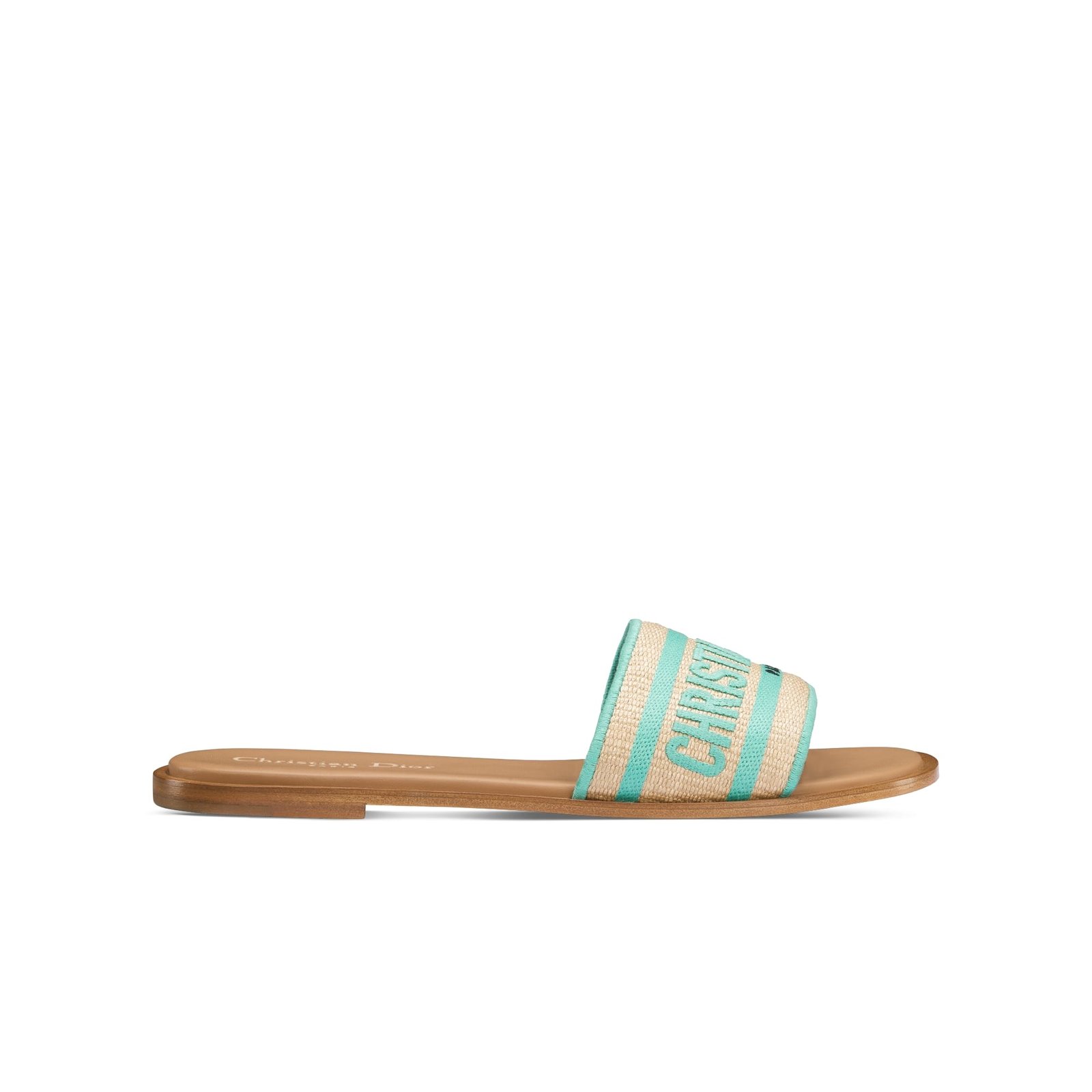 Dioriviera Dway Slide Natural Raffia and Aquamarina Embroidered Cotton