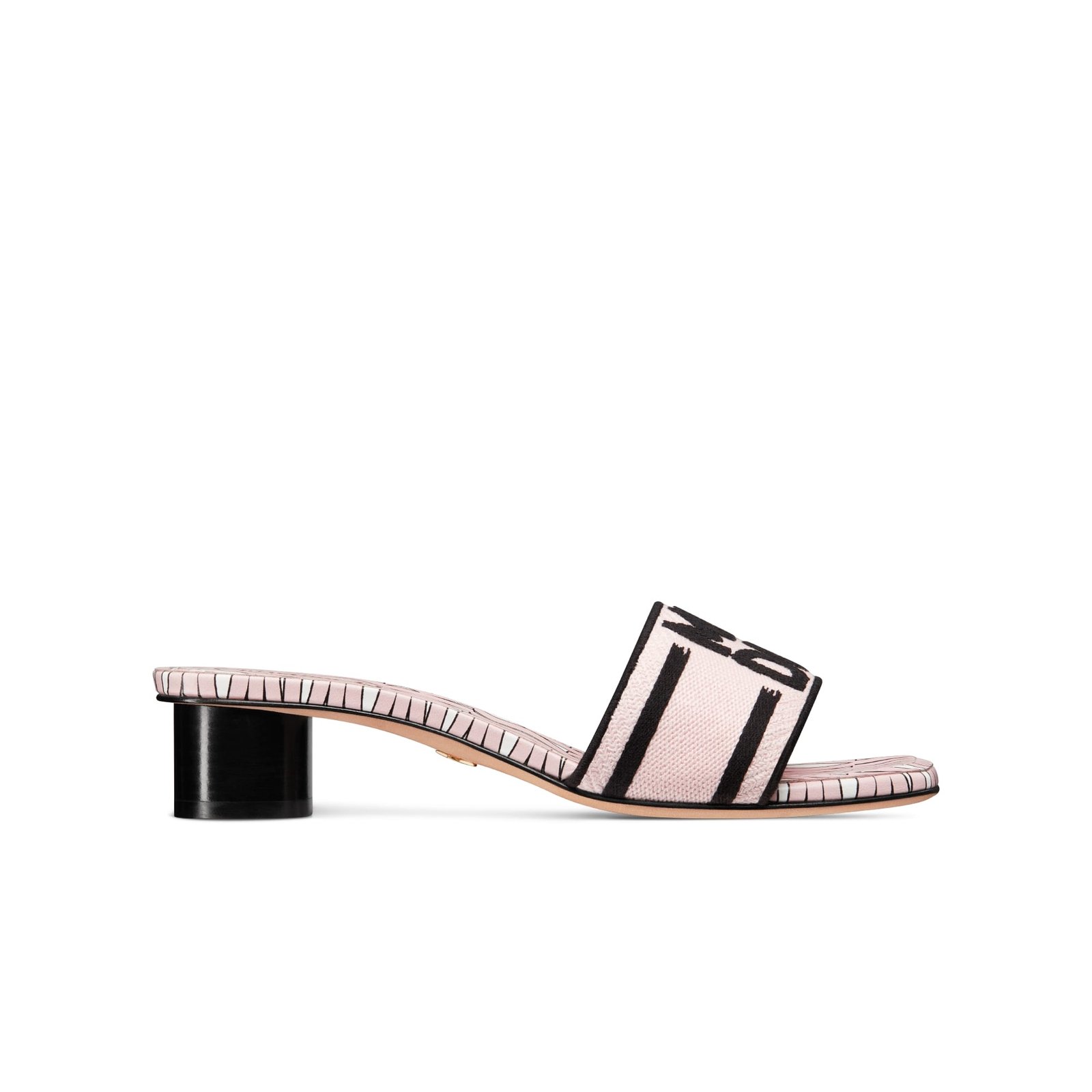 Dway Heeled Slide Embroidered Cotton and Pale Pink Miss Dior Allover Motif