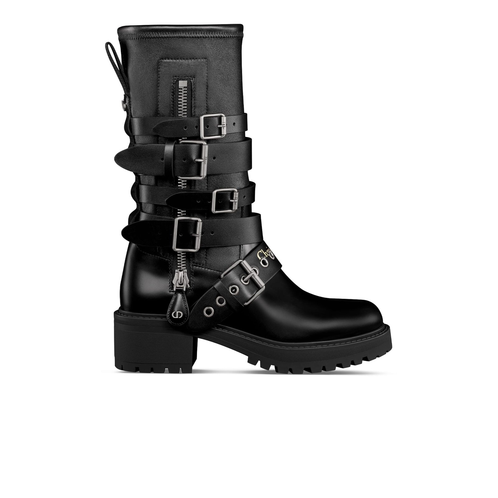 Dior D-Fight Boot Black Calfskin and Leather-Effect Stretch Material