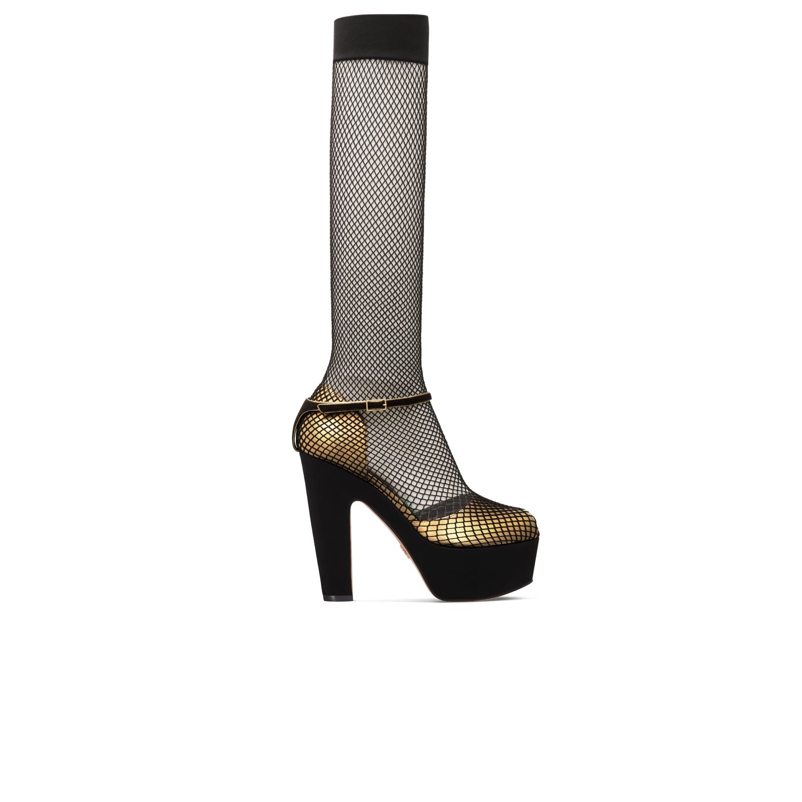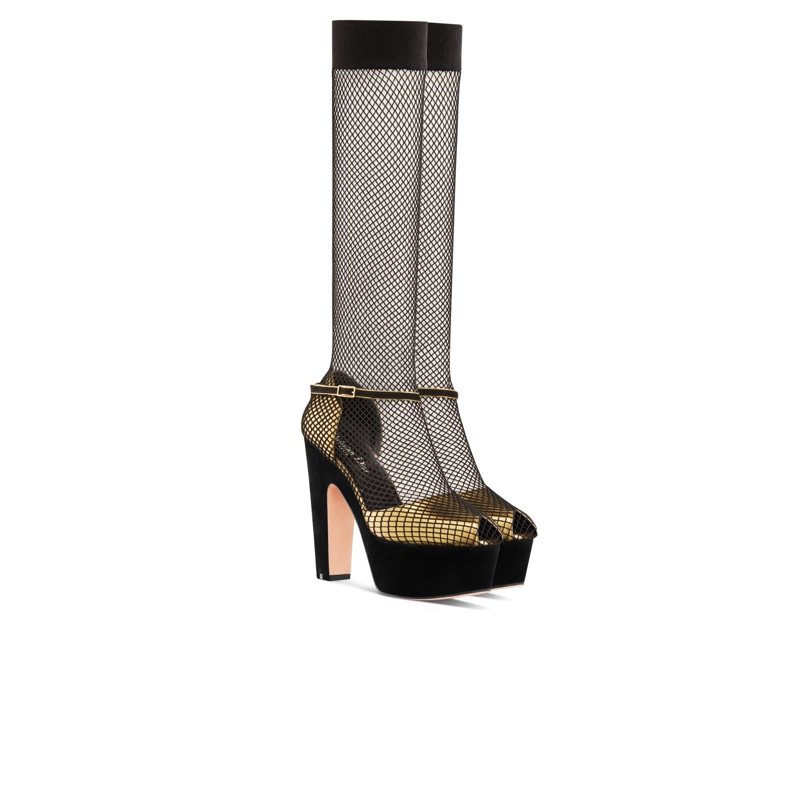 Dior Illusion Heeled Sandal Black Fishnet and Gold-Tone Laminated Lambskin