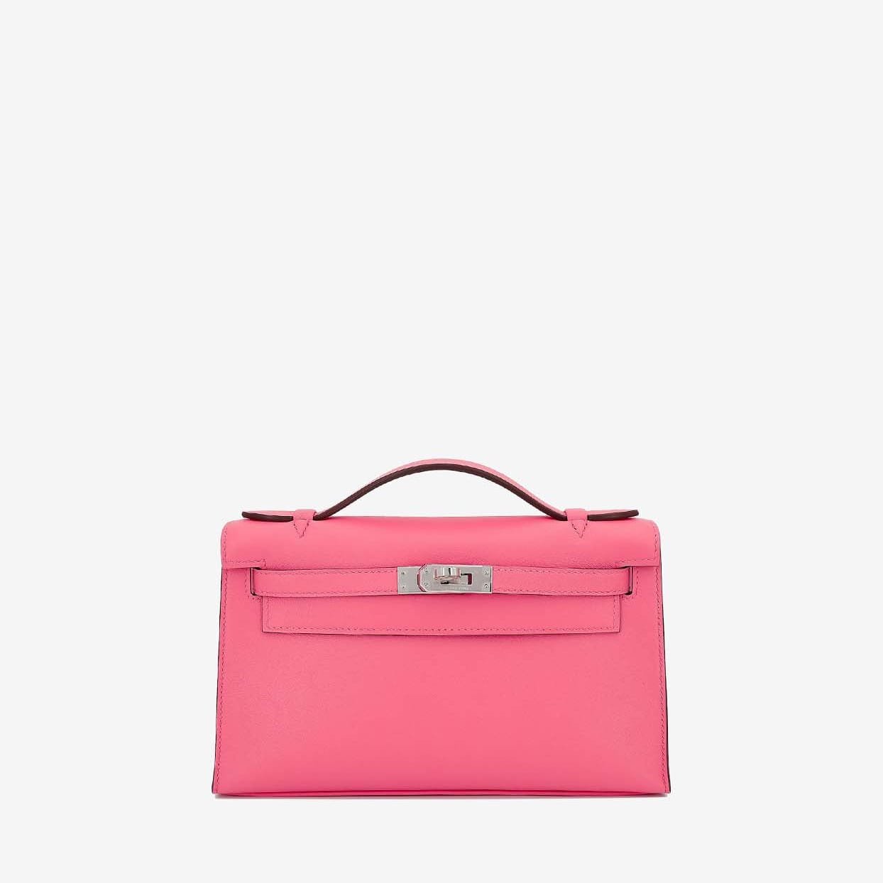 Replica Designer Bag Hermes Bag Replica Kelly Pochette Clutch Bag In Rose Azalee Swift With Palladium Hardware