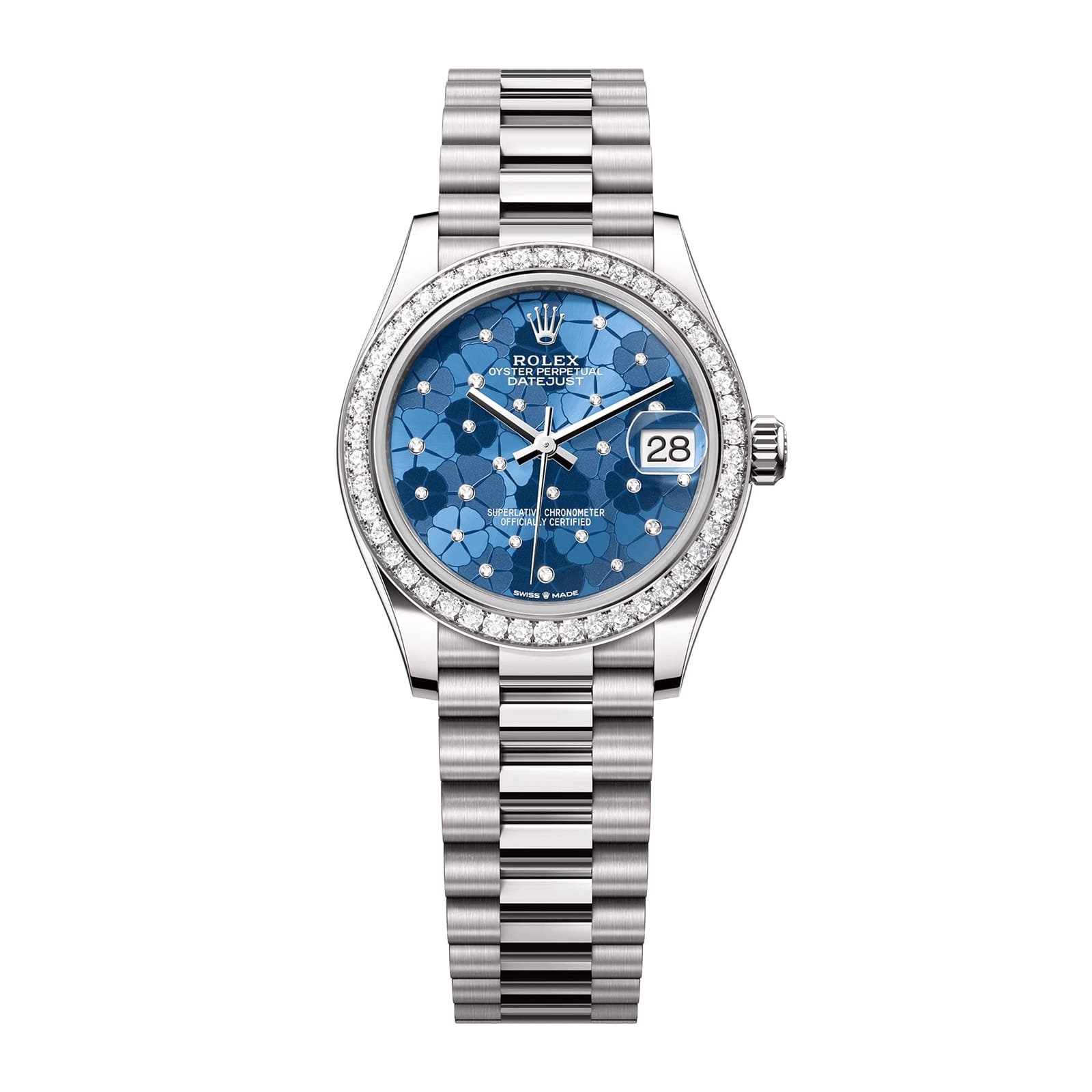 Rolex Datejust 31 White Gold Azzurro Blue Floral Motif Diamond Dial & Diamond Bezel President Bracelet 278289RBR