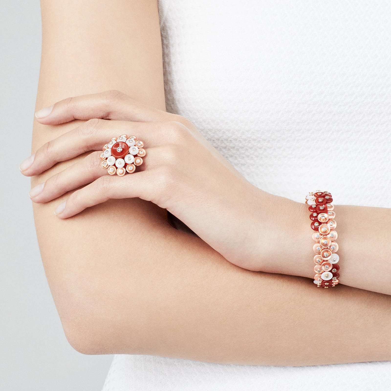 Van Cleef & Arpels Bouton D’Or Bracelet 18K Rose Gold Carnelian Diamond Mother-Of-Pearl