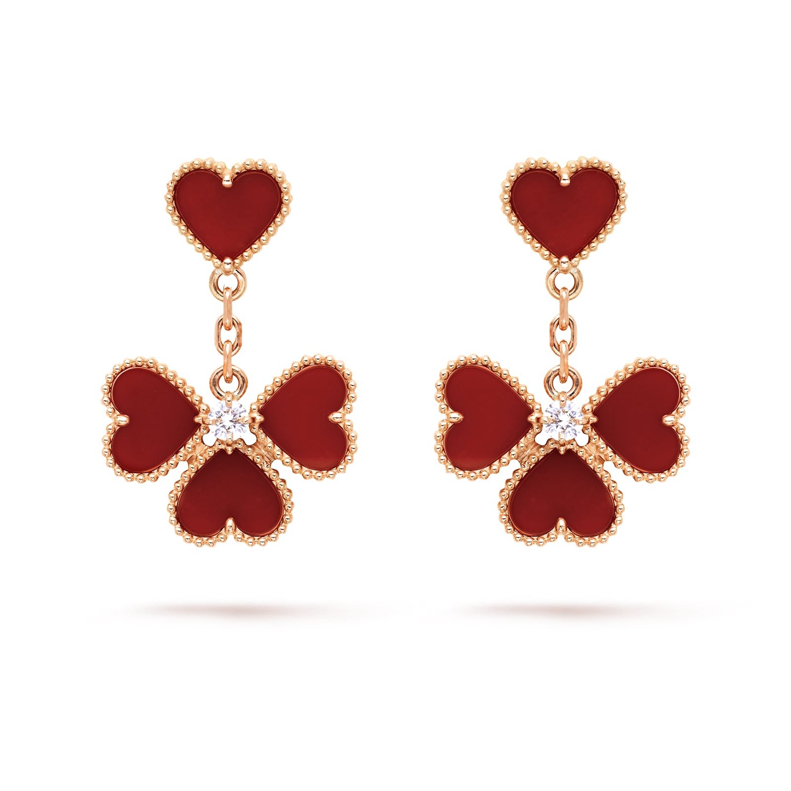 Van Cleef & Arpels Sweet Hearts Earrings 18K Rose Gold Carnelian Diamond