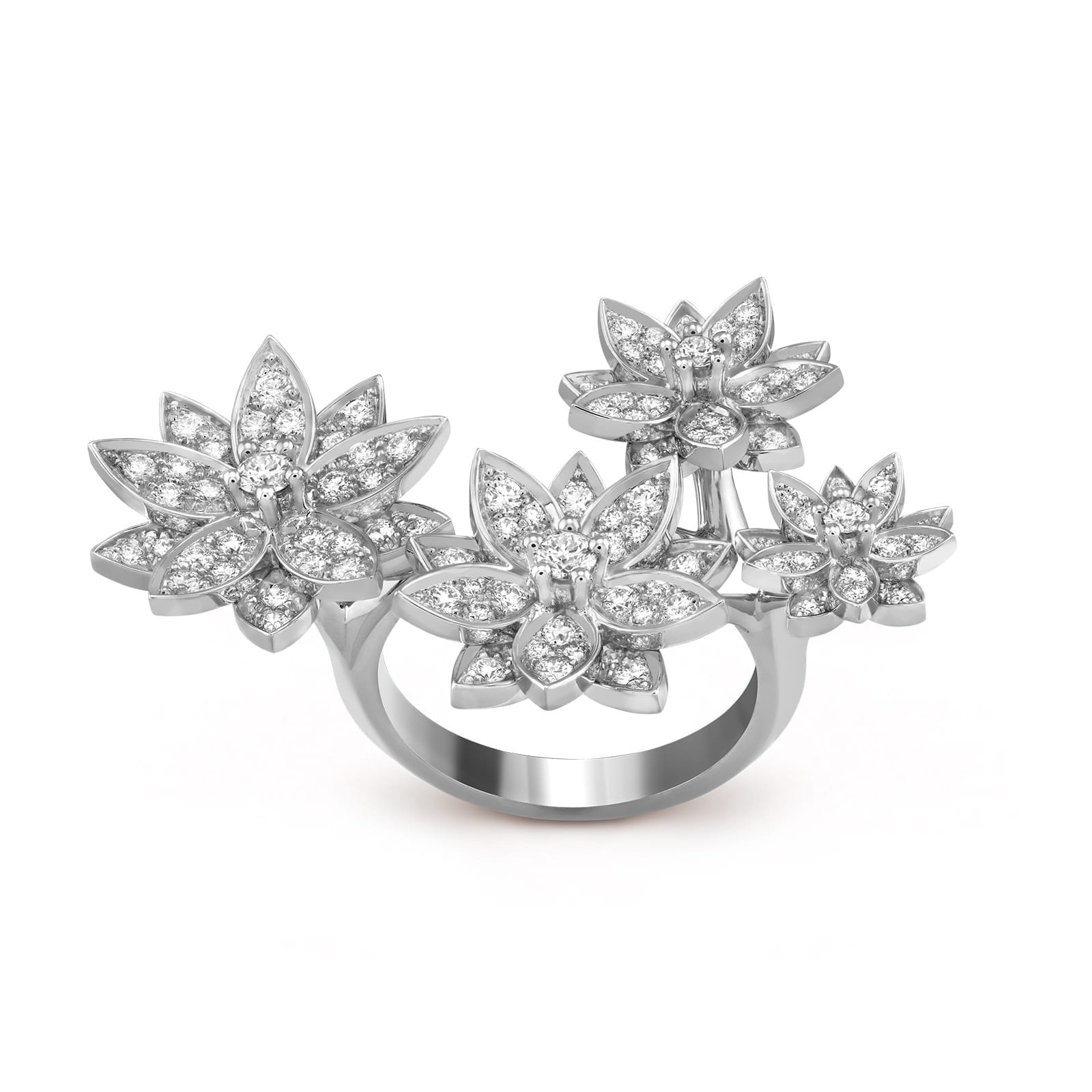 Van Cleef & Arpels Lotus Between The Finger Ring 4 Flowers 18K White Gold Diamond