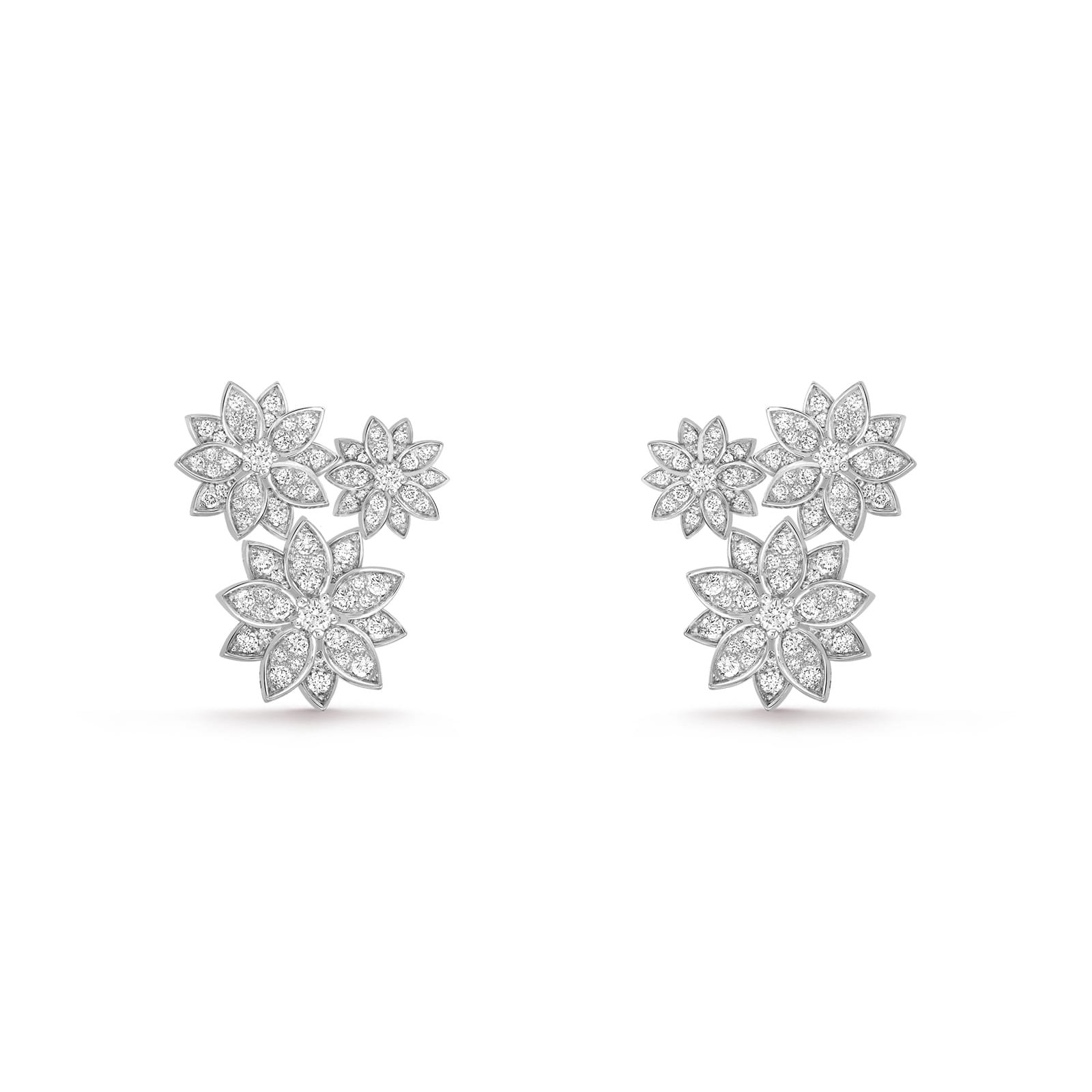 Van Cleef & Arpels Lotus Earrings 3 Flowers 18K White Gold Diamond