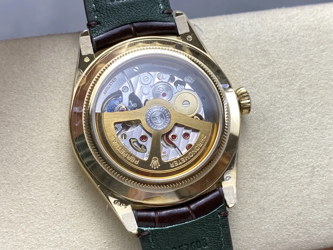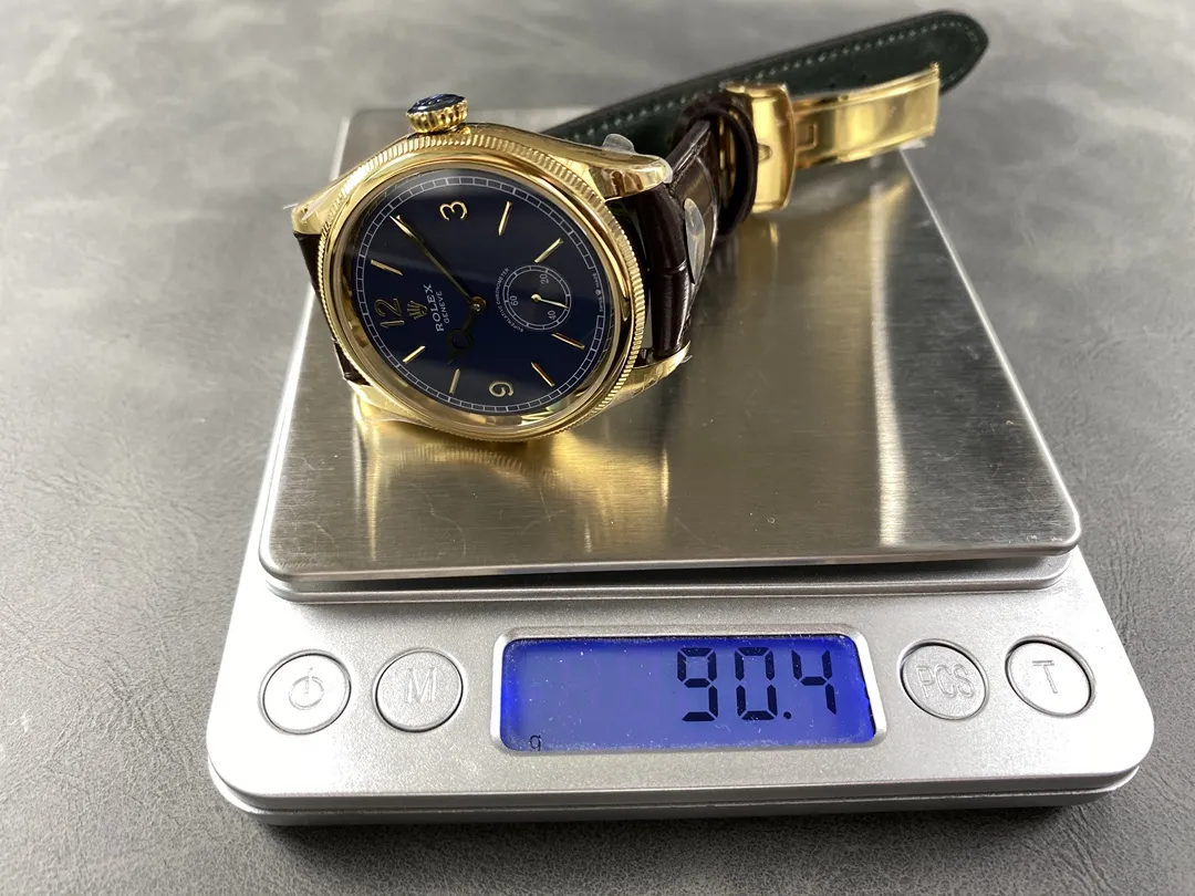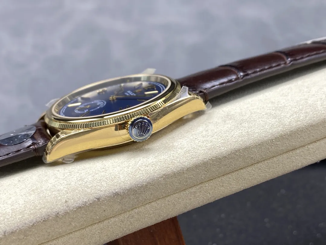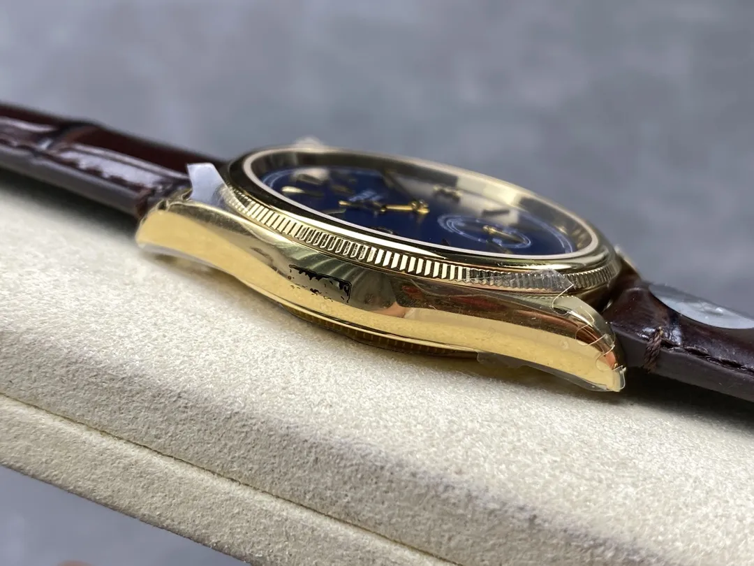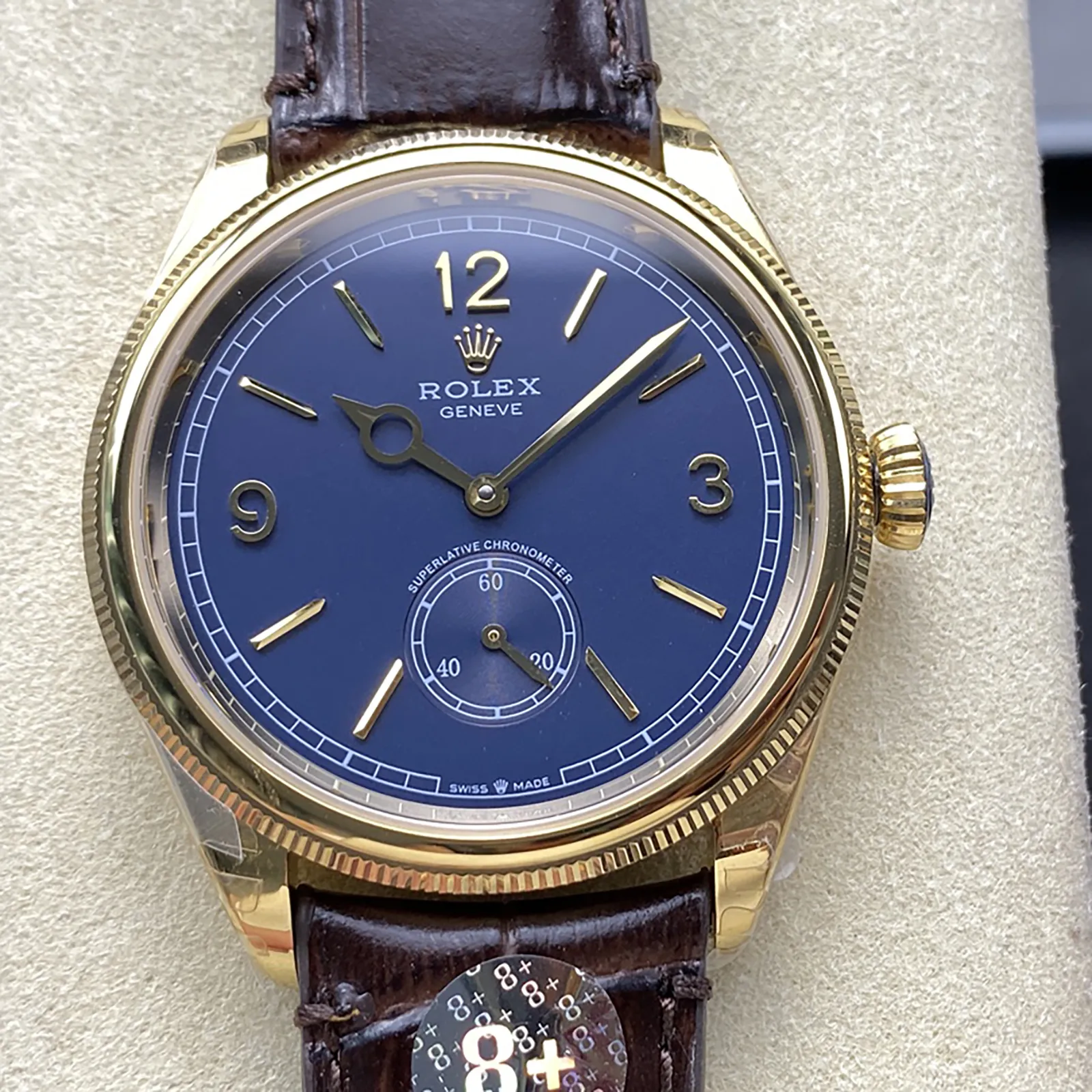 8+ Factory Rolex 1908 52508 39mm Yellow Gold Leather Strap Arabic Numerals Blue Dial