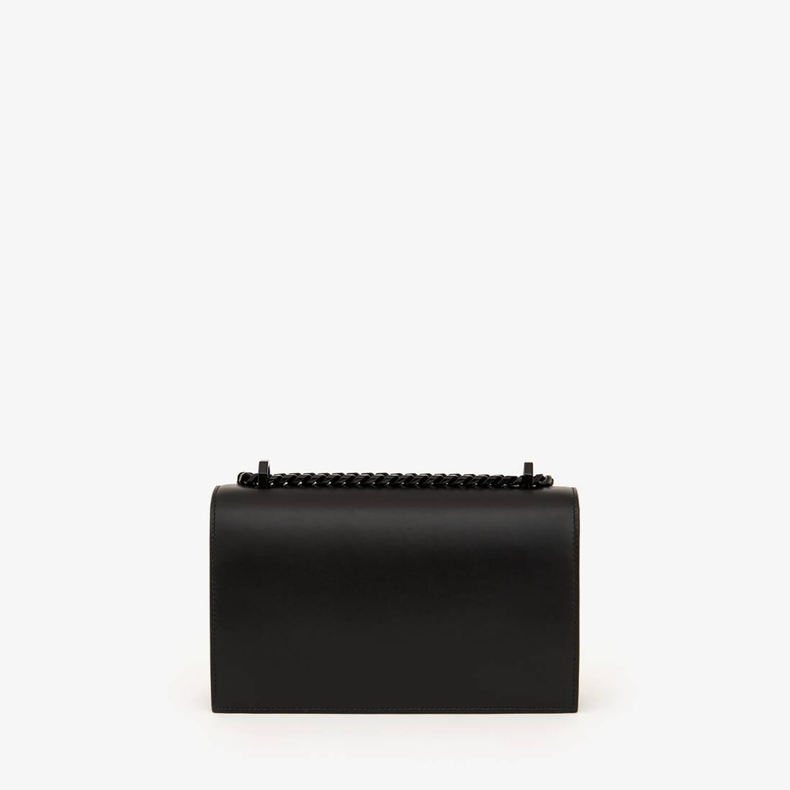 Black smooth calf leather Jewelled Satchel. The bag can be worn multiple ways: hand-held using the ring handle or by doubling up the straps. Alternatively, wear over the shoulder or across the body using the leather and chain straps.