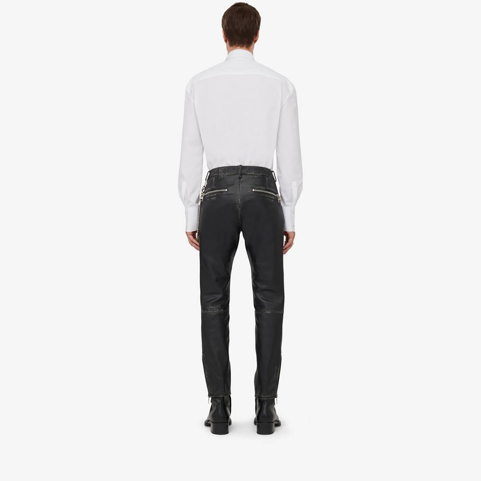 Alexander McQueen Men’s Leather Biker Trousers in Black
