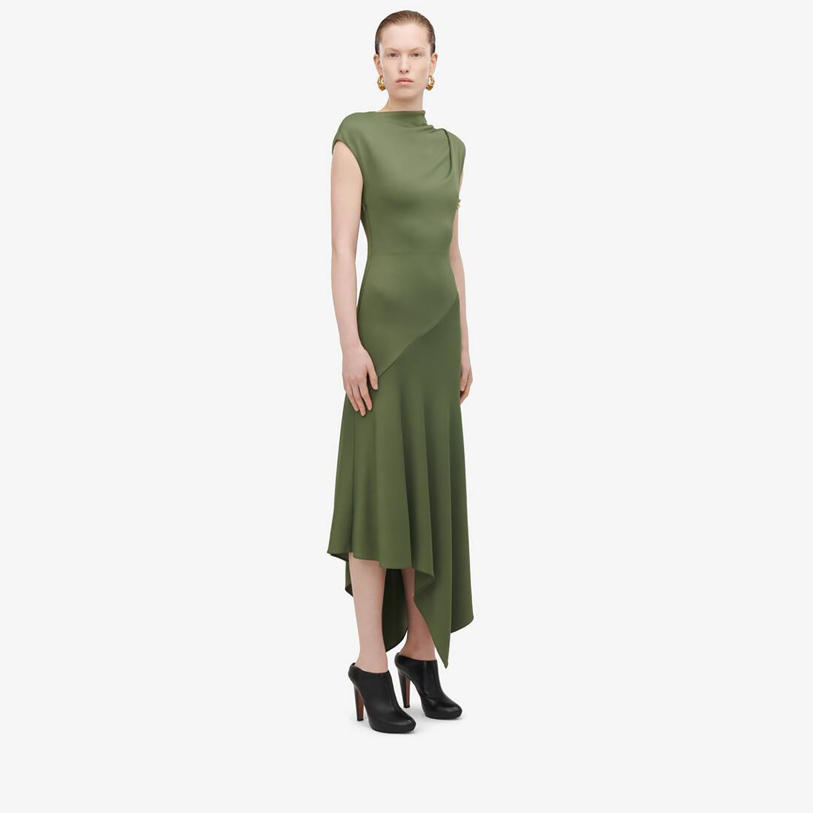 Alexander McQueen Women’s Asymmetric Midi Dress in Khaki